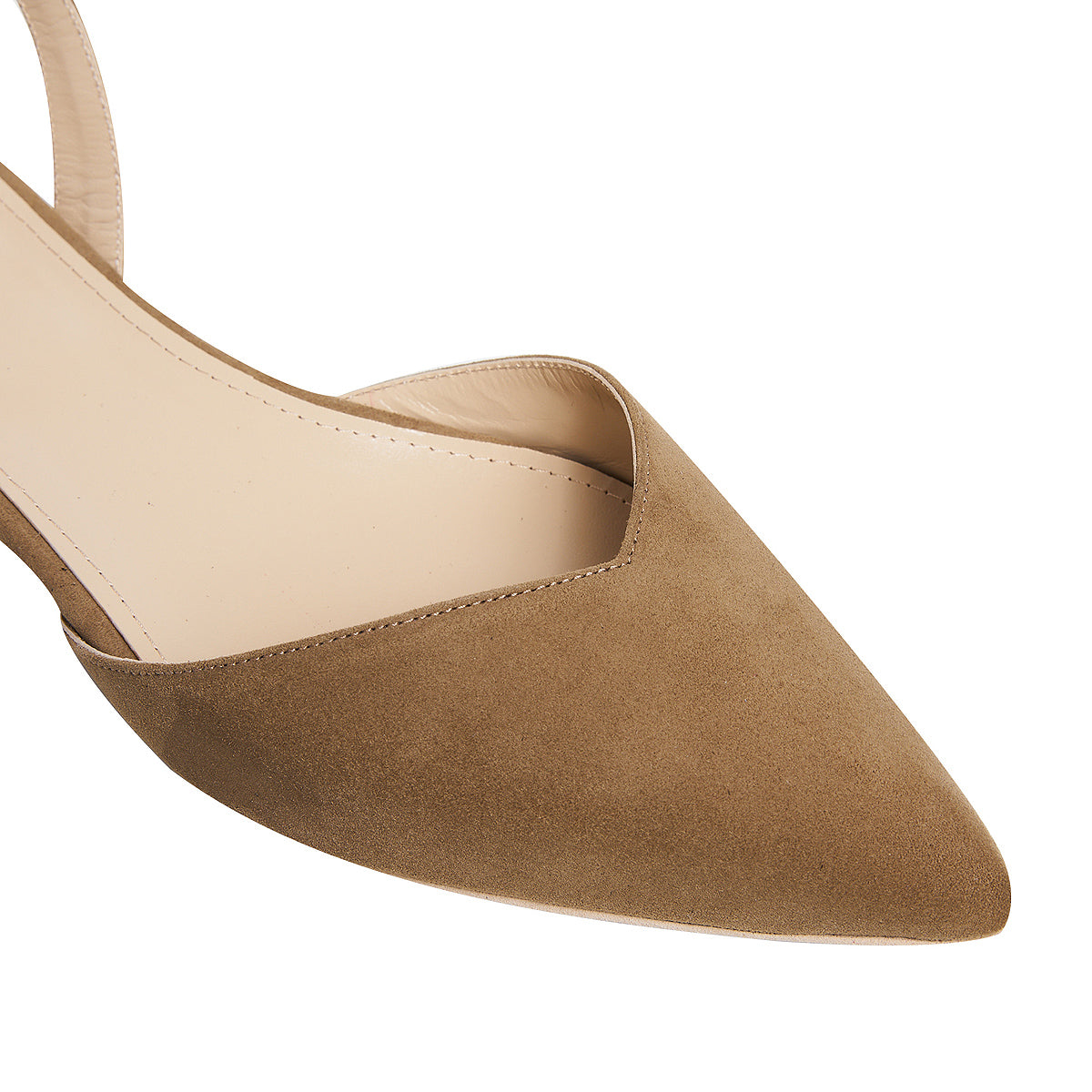 Clasicele noastre sandale Alice, sunt aici prezentate cu un toc mic si realizate din piele intoarsa camel. Un stil foarte actual, urban sau de vacanta. Completeaza o tinuta office sau un outfit vaporos. Reprezinta varianta perfecta cand nu vrei sa faci vreun efort pe tocuri.