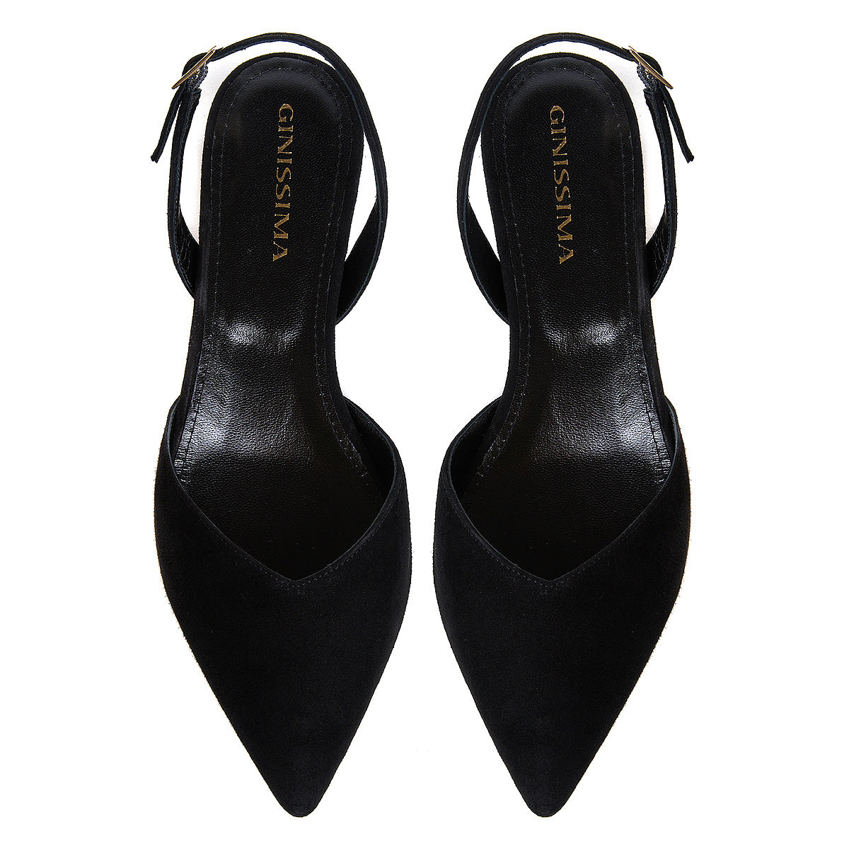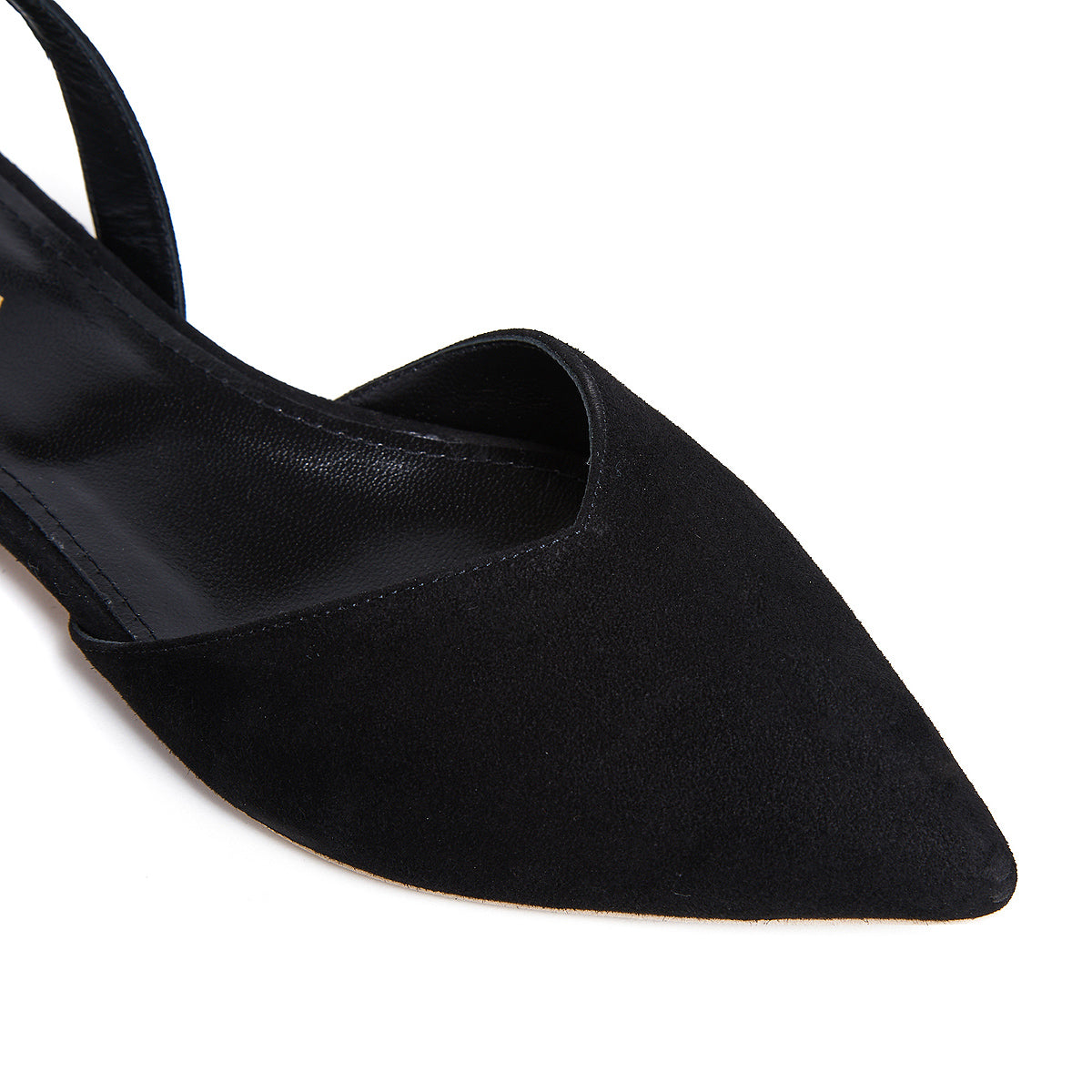 Clasicele noastre sandale Alice, sunt aici prezentate cu un toc mic si realizate din piele intoarsa neagra. Un stil foarte actual, urban sau de vacanta. Completeaza o tinuta office sau un outfit vaporos. Reprezinta varianta perfecta cand nu vrei sa faci vreun efort pe tocuri.
