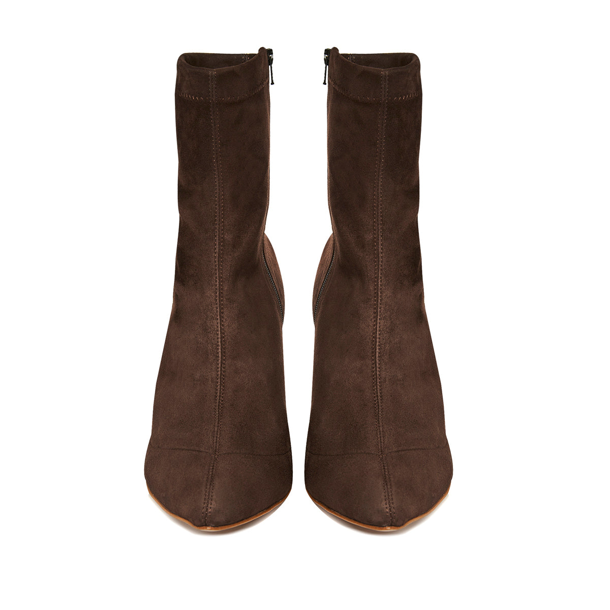 Botine Mia din Piele Intoarsa Elastica, Maro