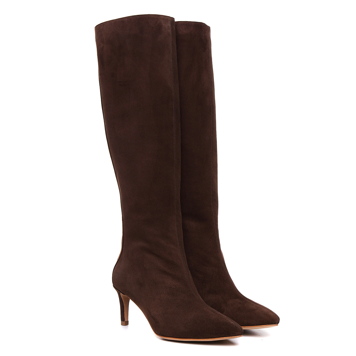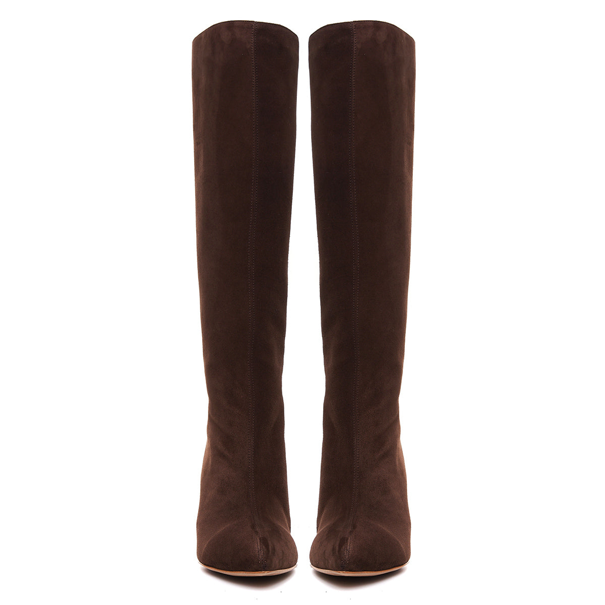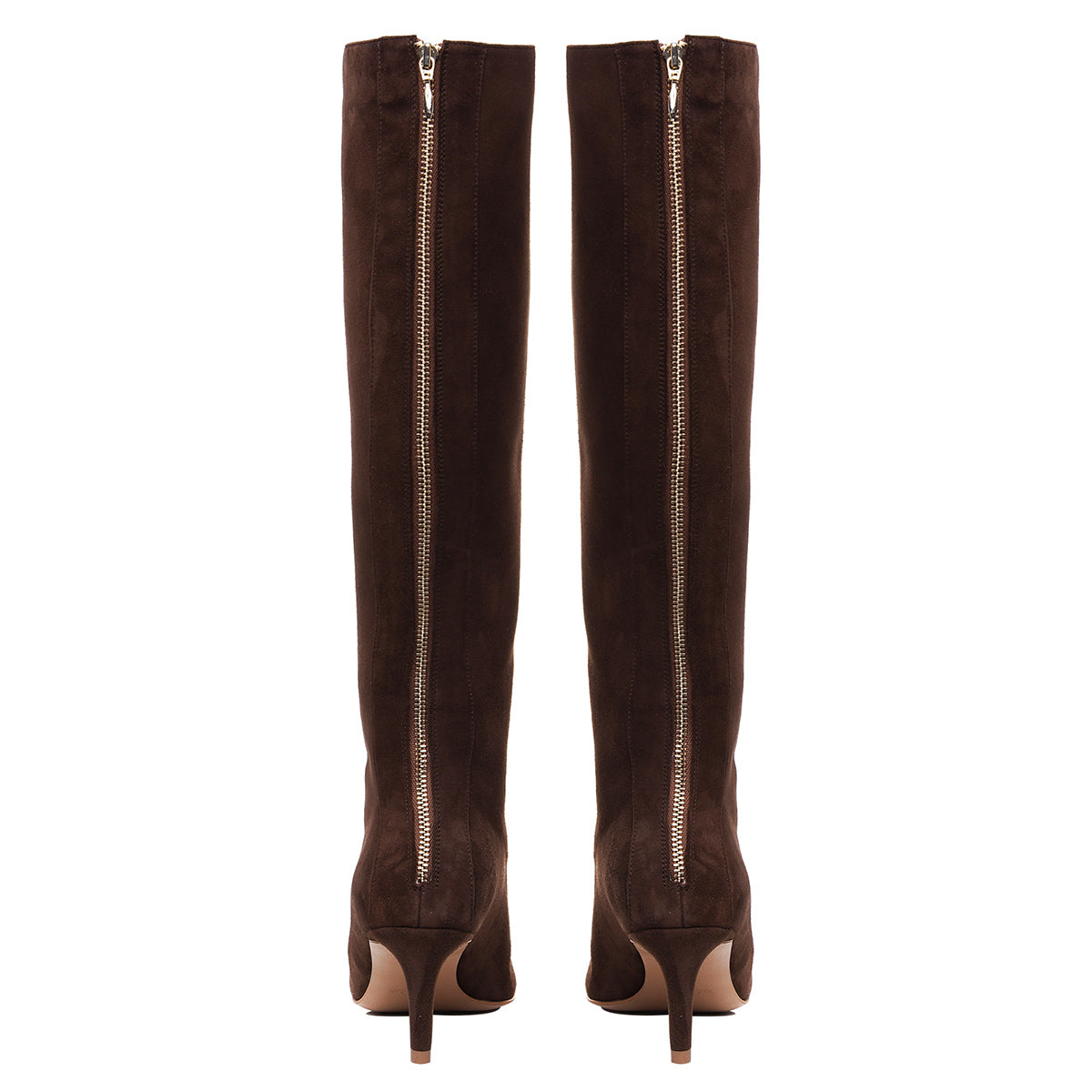 Cizme Gloria Piele Intoarsa, Sub Genunchi, Maro