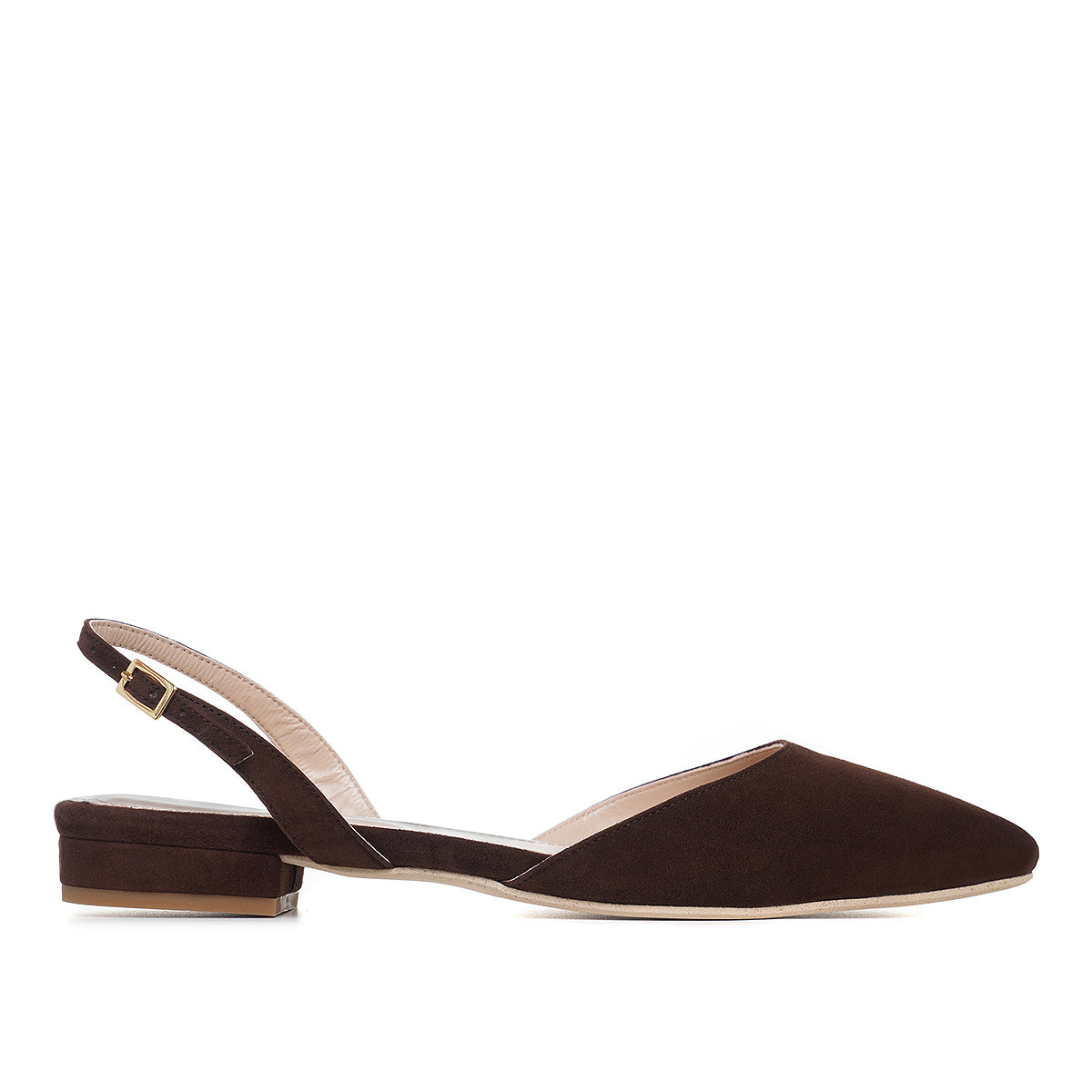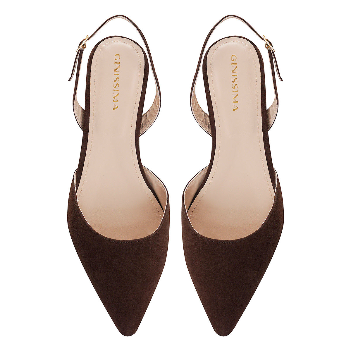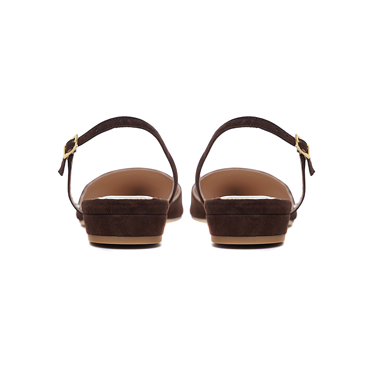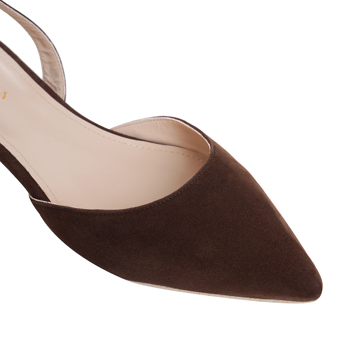 Clasicele noastre sandale Alice sunt aici prezentate cu un toc mic si realizate din piele intoarsa maro. Un stil foarte actual, urban sau de vacanta. Completeaza o tinuta de office sau un outfit vaporos. Reprezinta varianta perfecta cand nu vrei sa faci vreun efort pe tocuri.