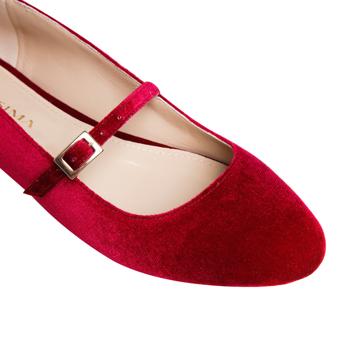 Balerinii Carrie sunt o reinterpretare a pantofilor clasici, rotunzi in partea din fata. Realizati din catifea rosie la exterior si interior din piele naturala, acestia reprezinta optiunea perfecta cand nu vrei sa faci vreun efort pe tocuri. Completeaza perfect o tinuta office sau un outfit casual de weekend, fiind realizati intr-un stil foarte actual.