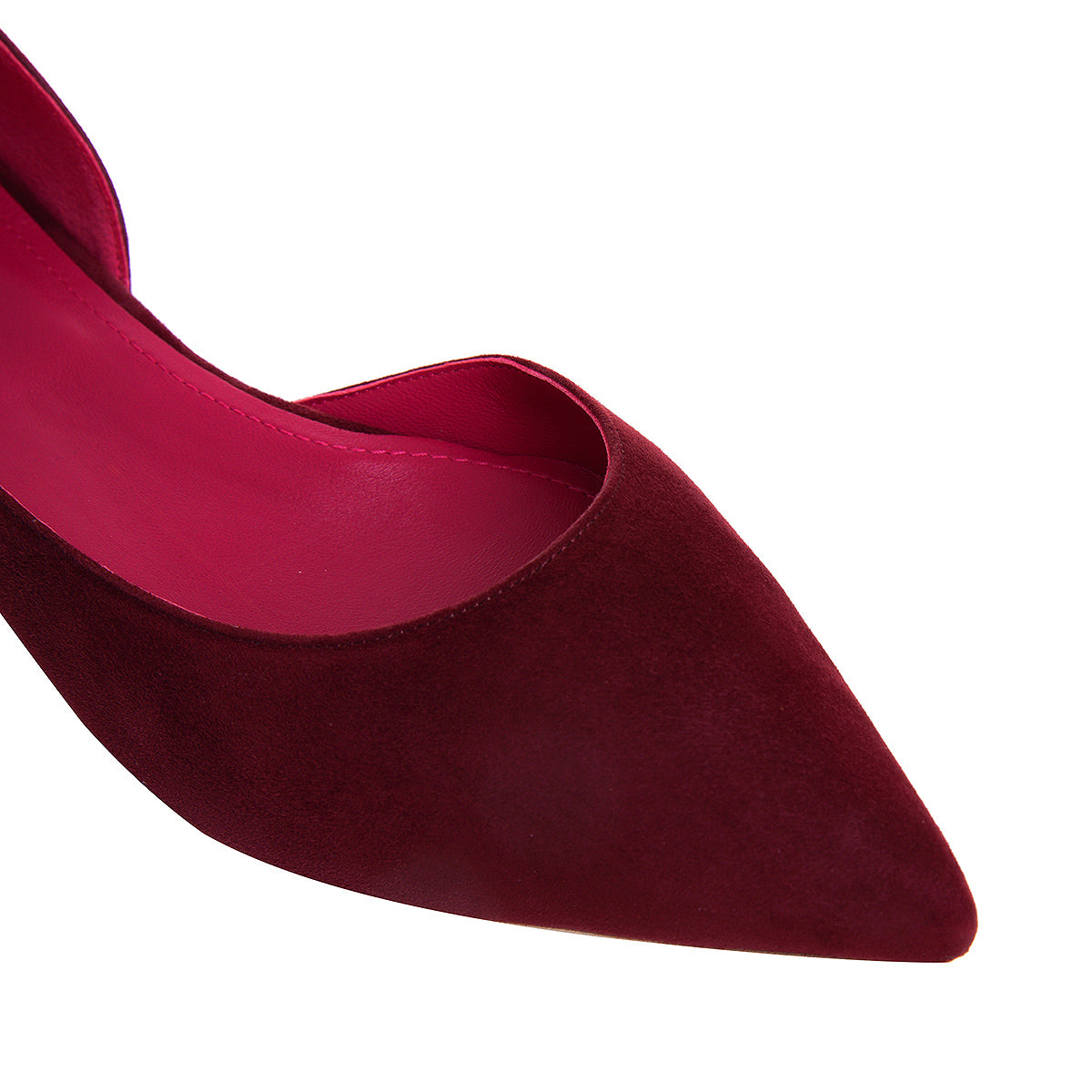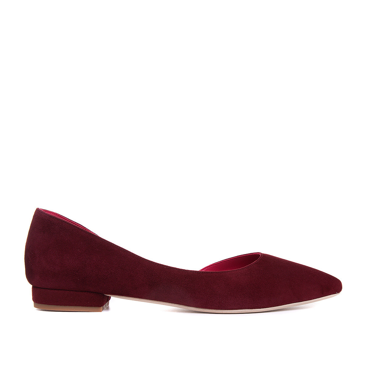 Interpretarea noastra a balerinilor clasici, aici decupati lateral, din piele intoarsa burgundy si interior in acelasi ton. Un stil foarte actual, urban sau de vacanta. Completeaza o tinuta office sau un outfit vaporos. Reprezinta varianta perfecta cand nu vrei sa faci vreun efort pe tocuri.