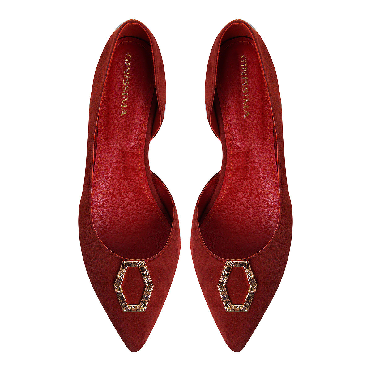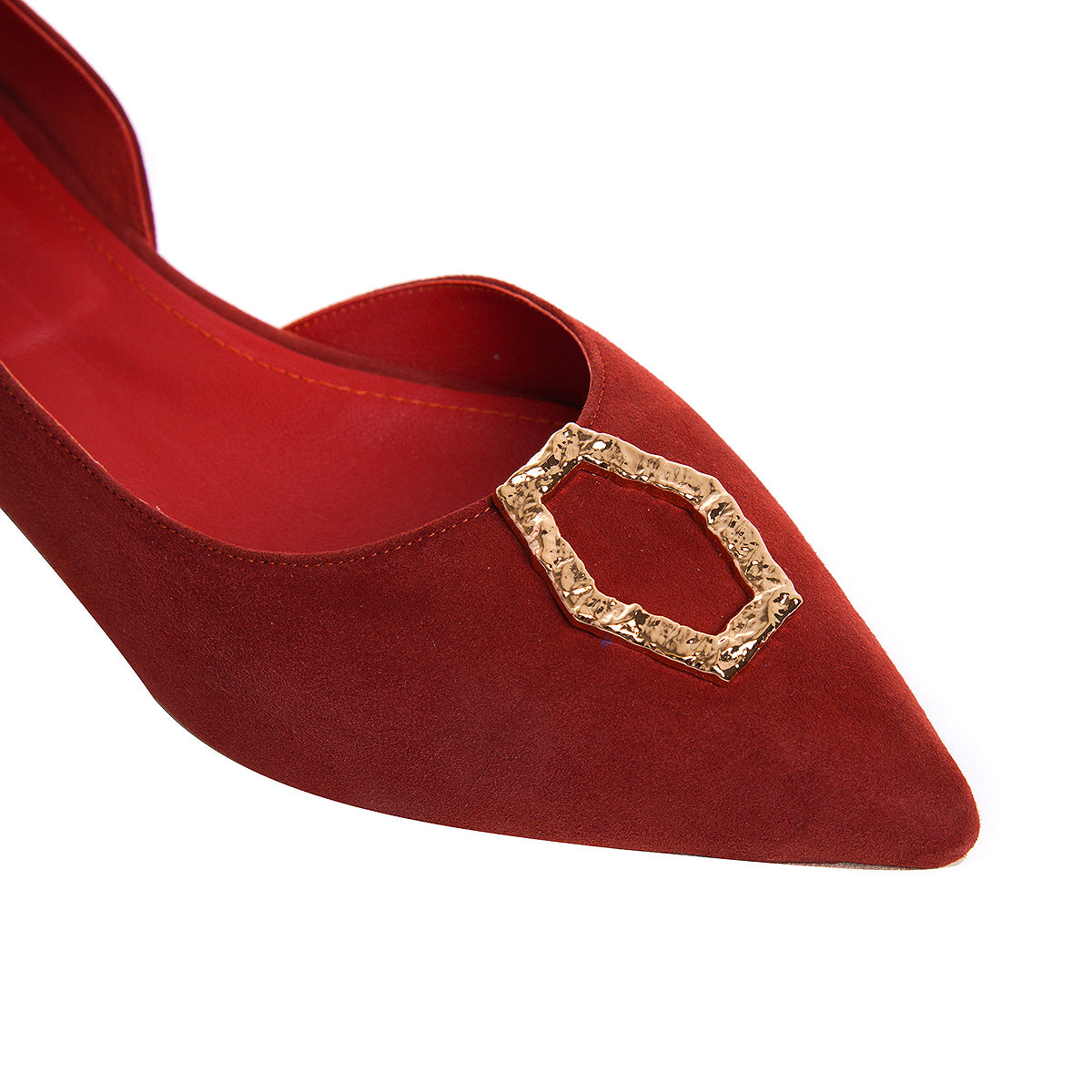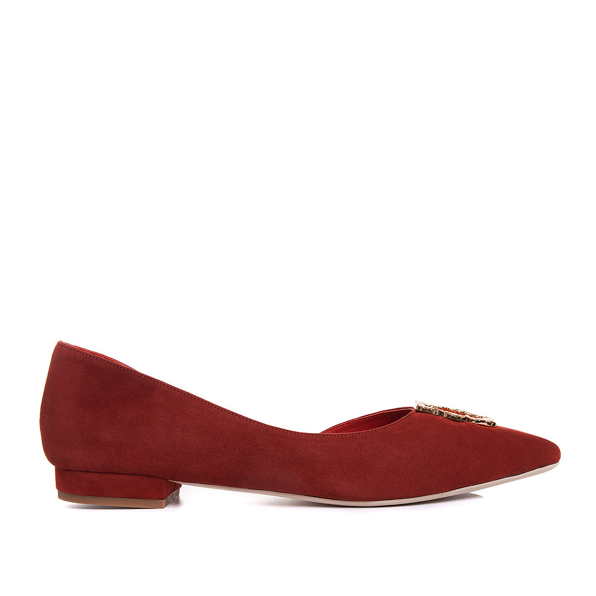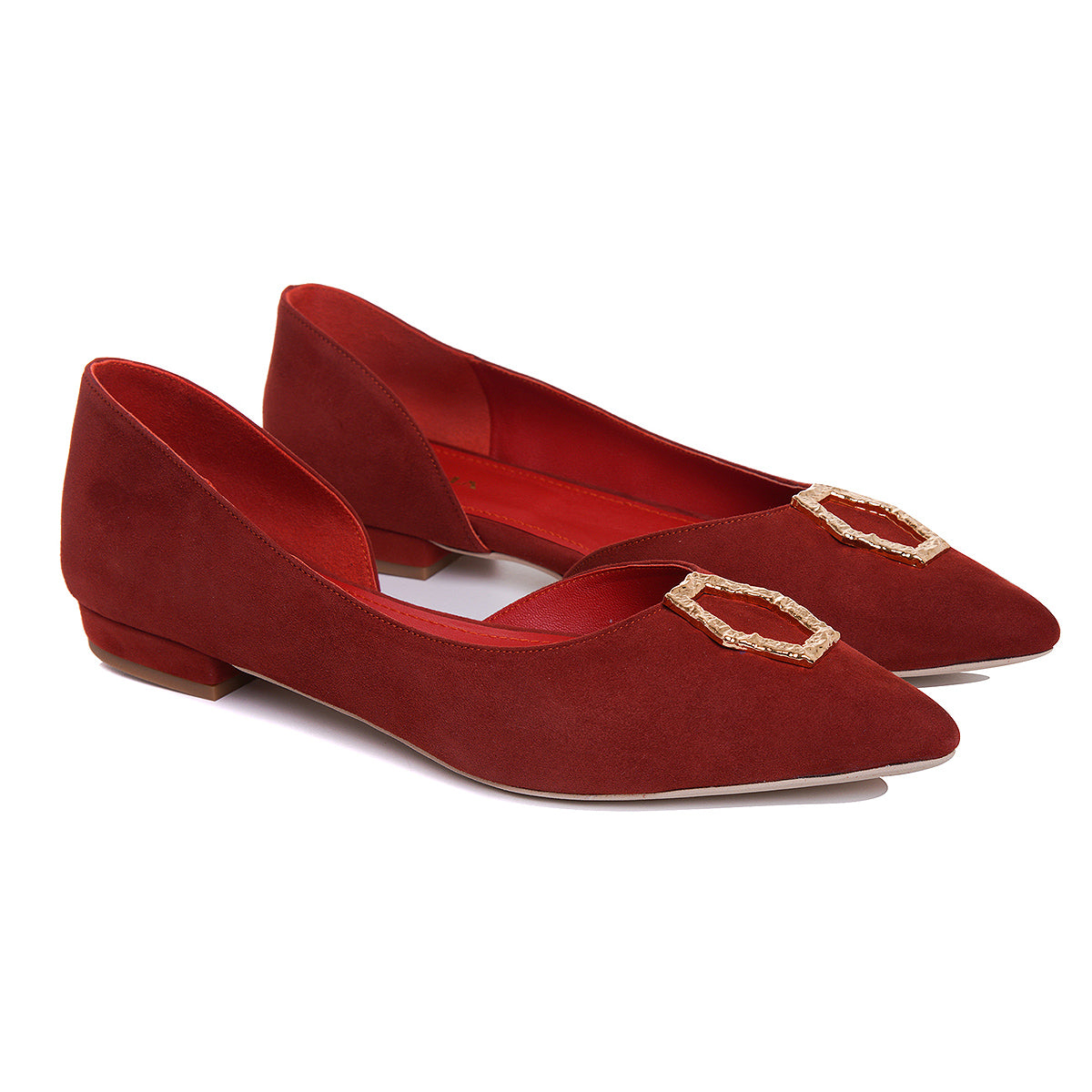 Interpretarea noastra a balerinilor clasici, aici decupati lateral, din piele intoarsa, cu accesoriu hexagonal auriu . Un stil foarte actual, urban sau de vacanta. Completeaza o tinuta office sau un outfit vaporos. Reprezinta varianta perfecta cand nu vrei sa faci vreun efort pe tocuri.