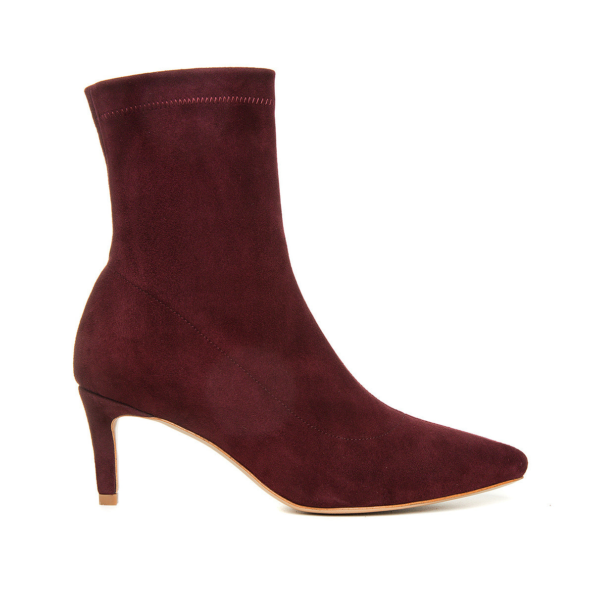 Botine Mia din Piele Intoarsa Elastica, Burgundy - Editie Limitata