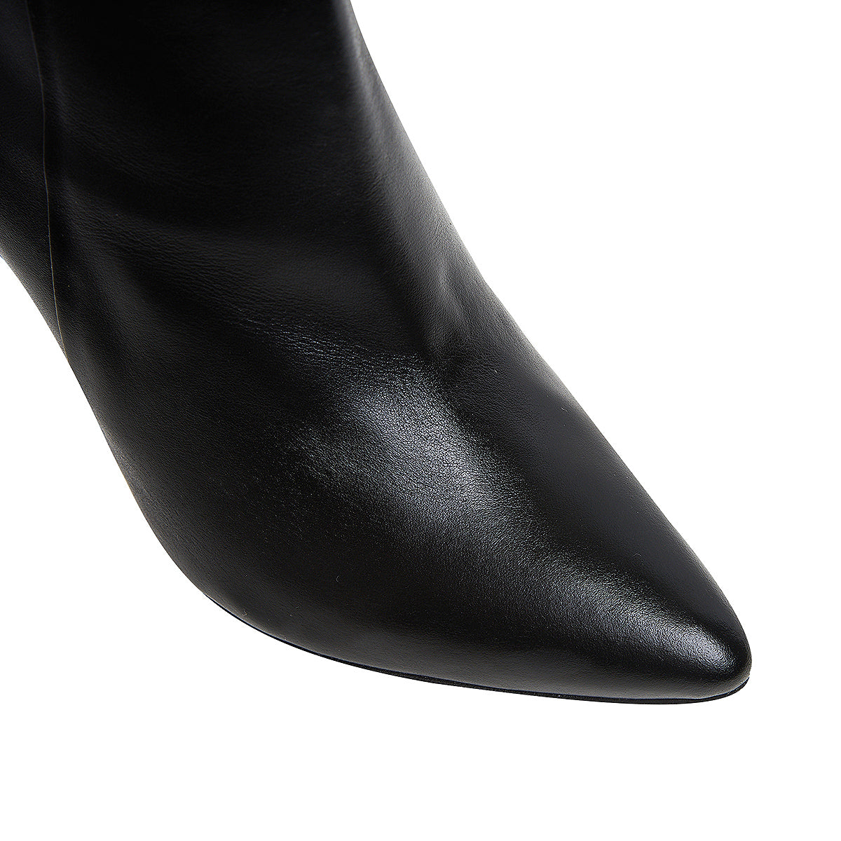 Elegante si rafinate, aceste botine clasice din piele naturala neagra, varf ascutit si calapod comod, au fost concepute pentru a fi purtate cu ușurință intreaga zi, fie ca alegi pantaloni sau rochii.