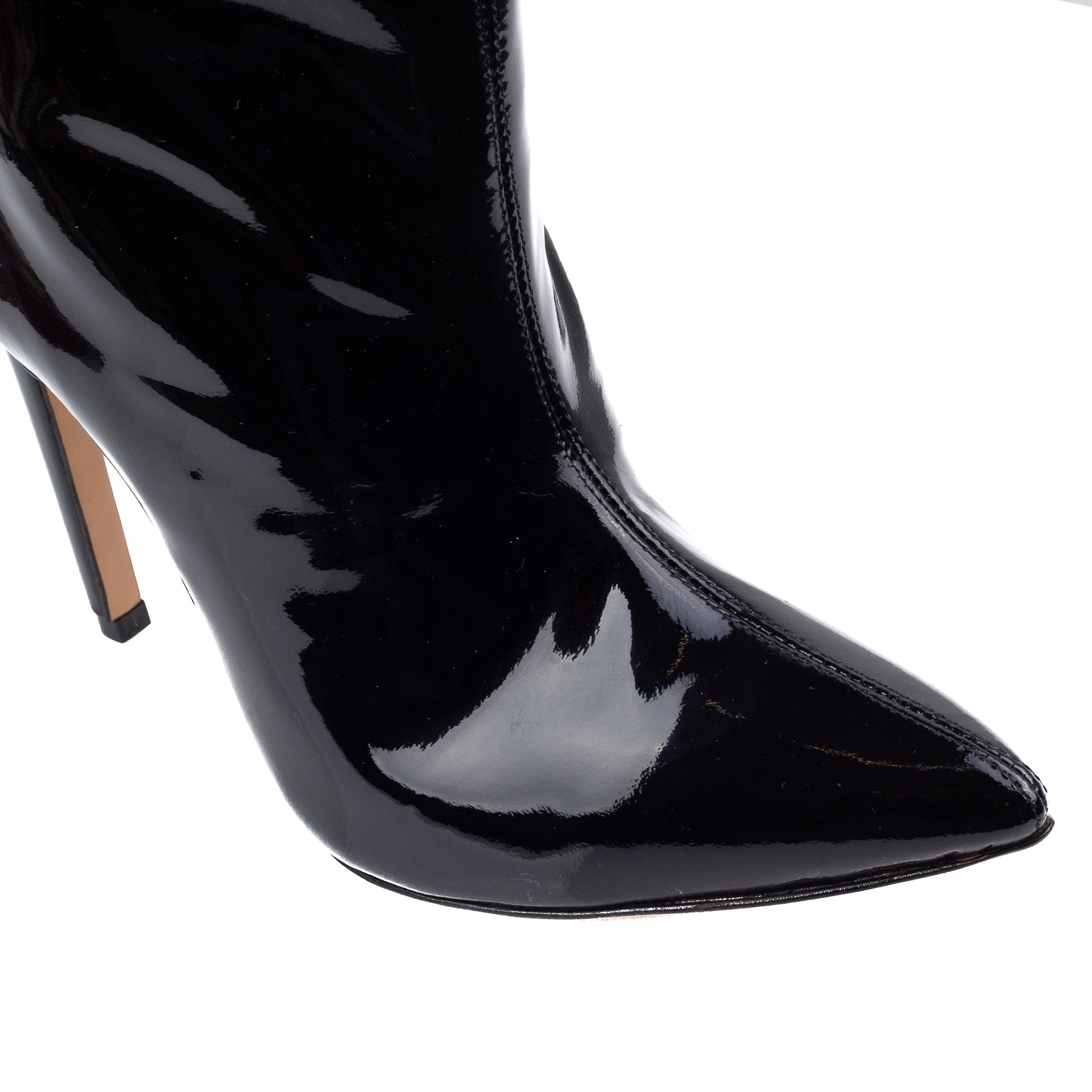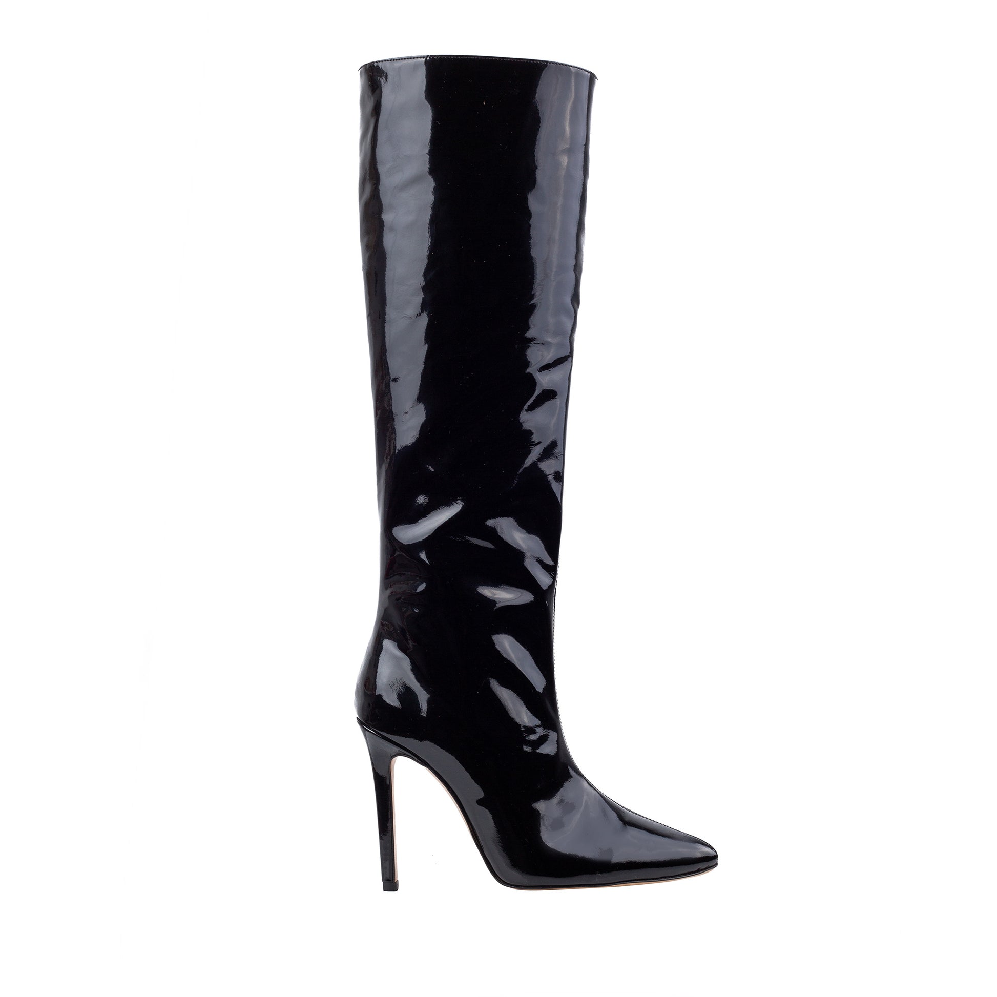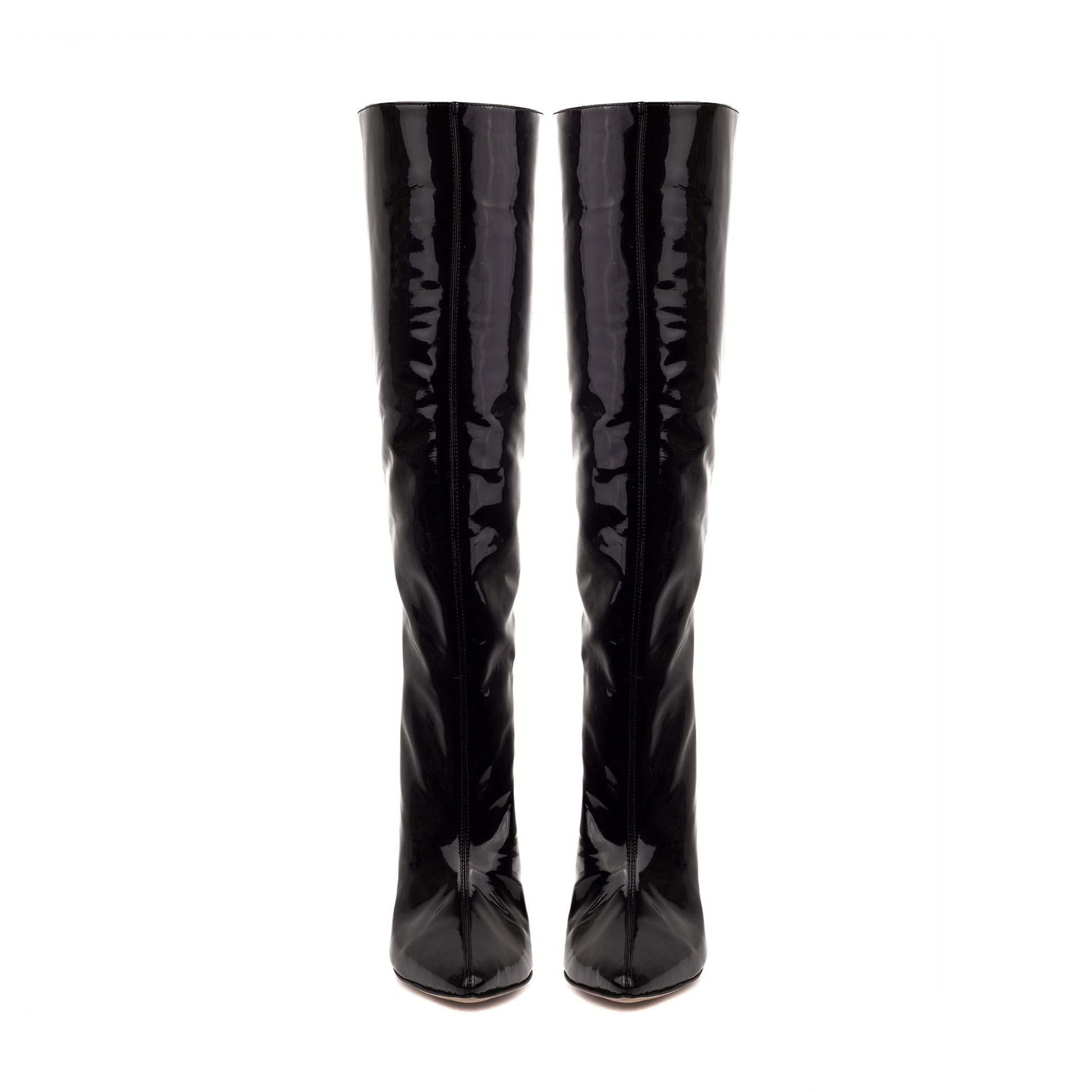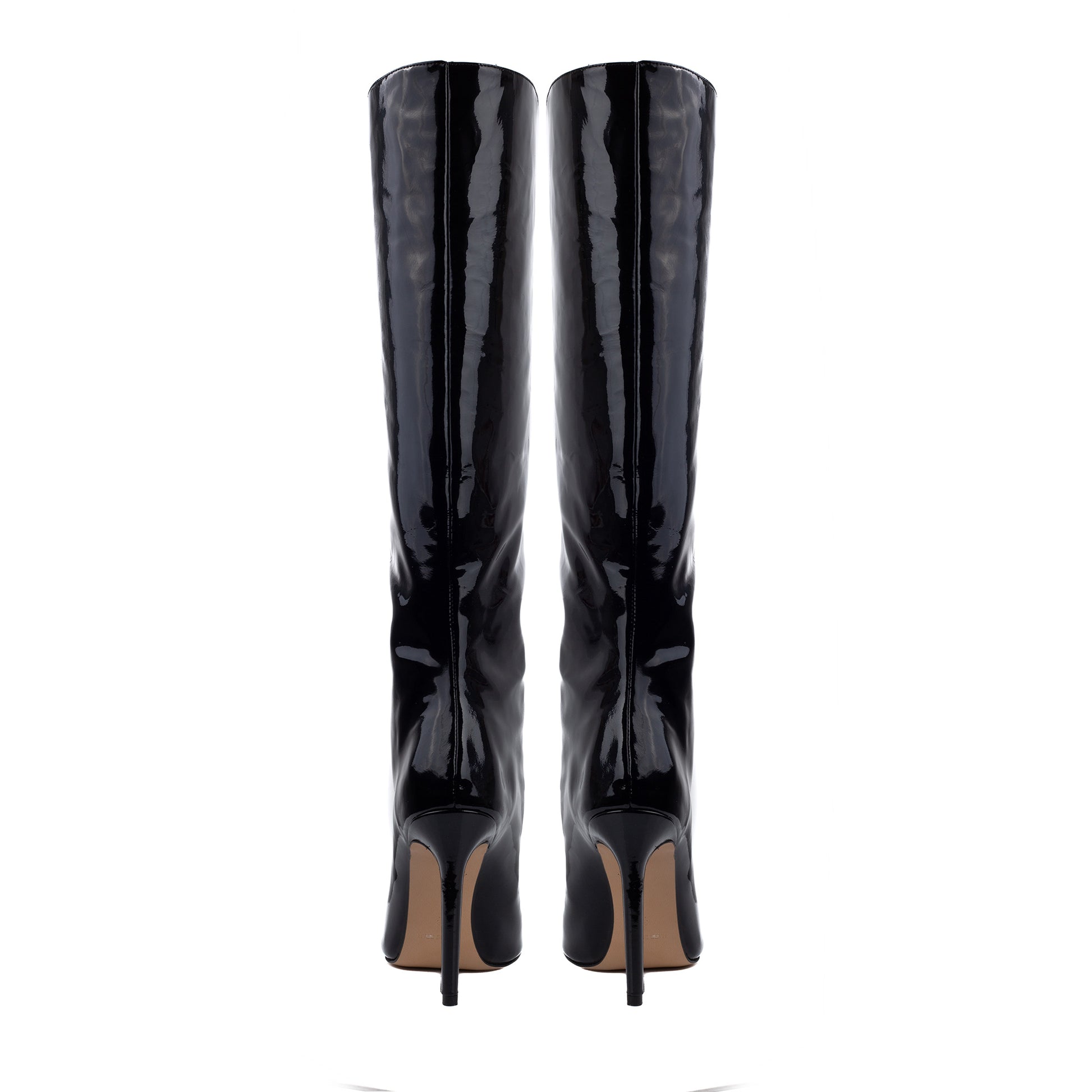Cizma din imagine este realizata din piele lacuita neagra. Inaltimea cizmei este de 40cm.