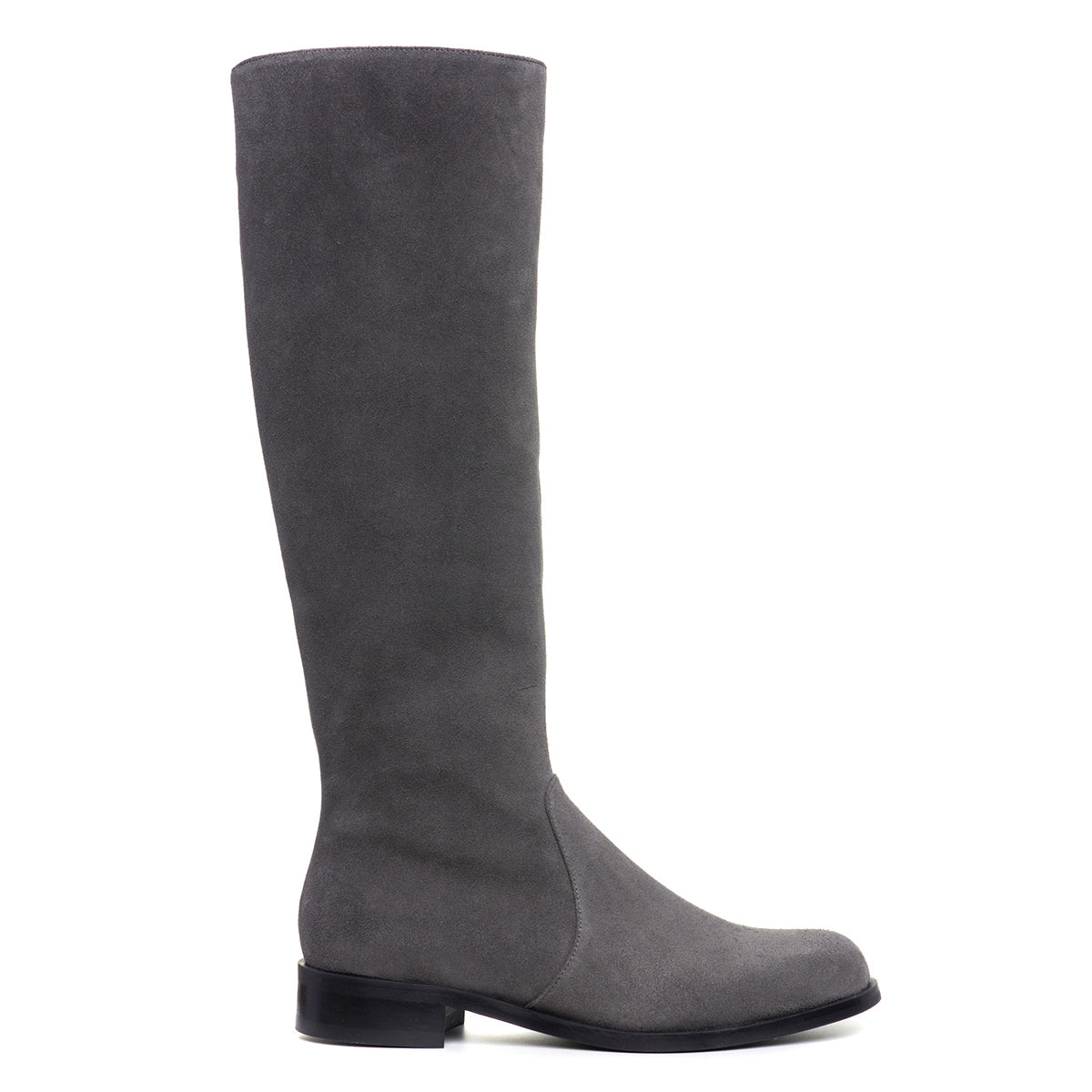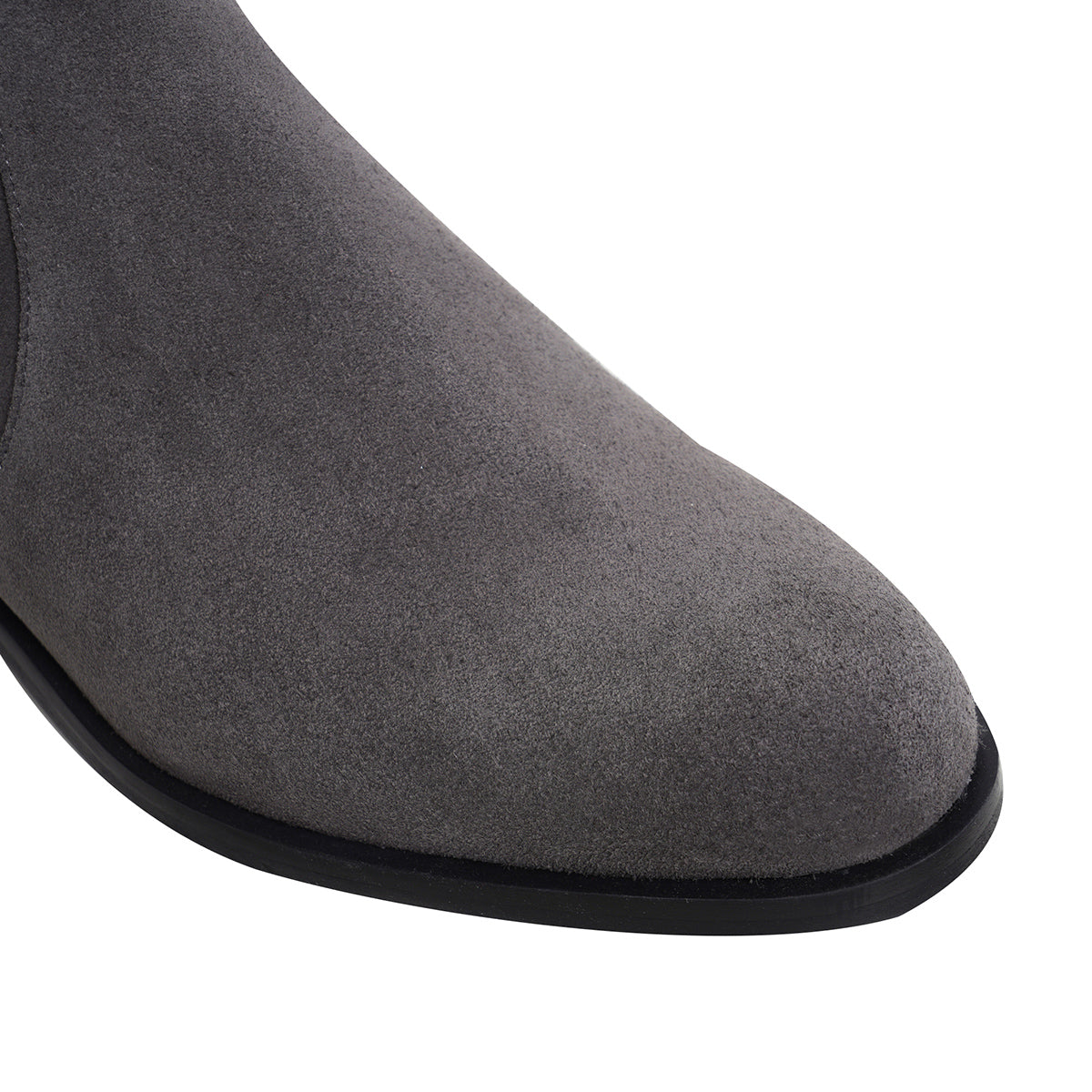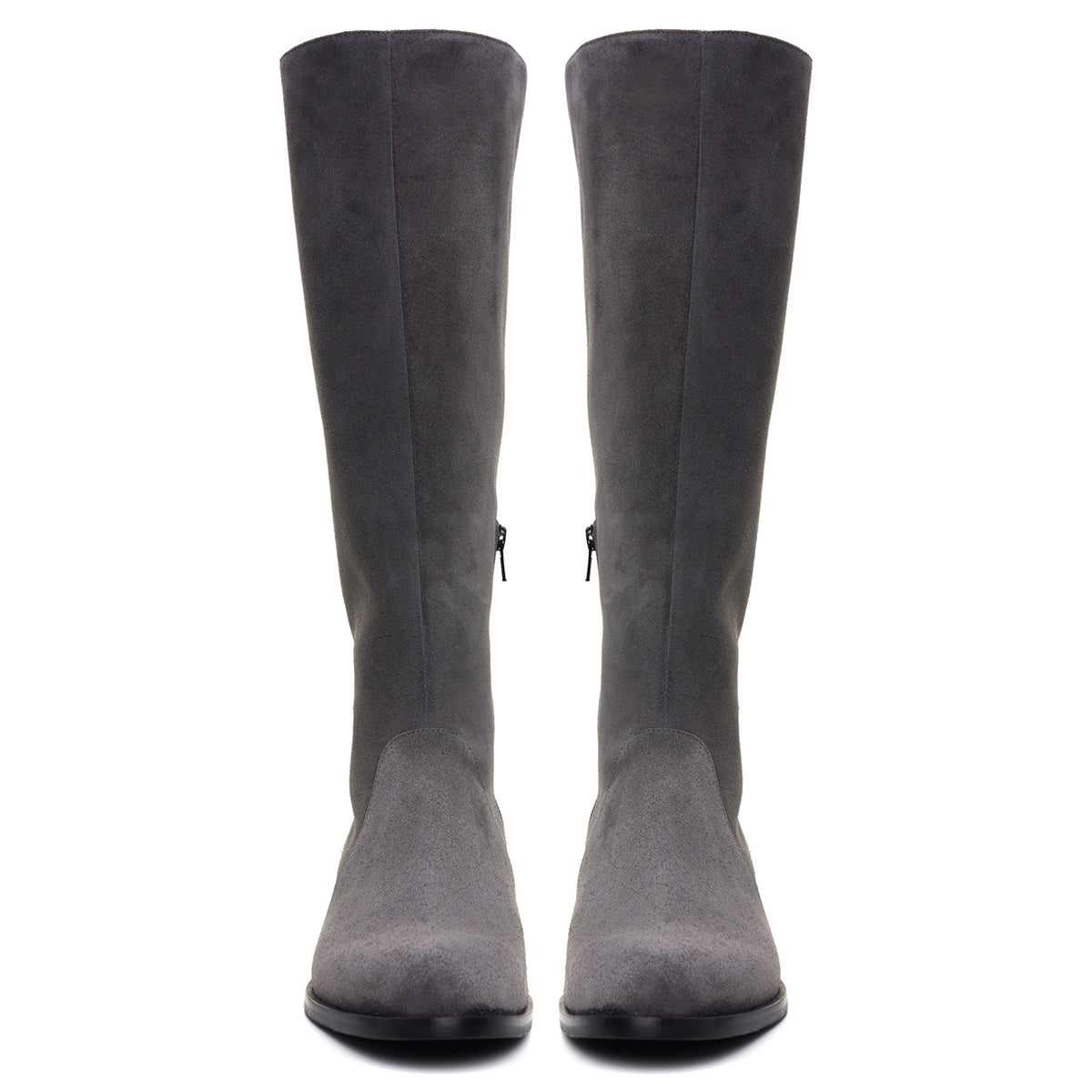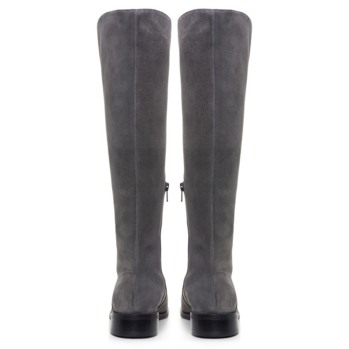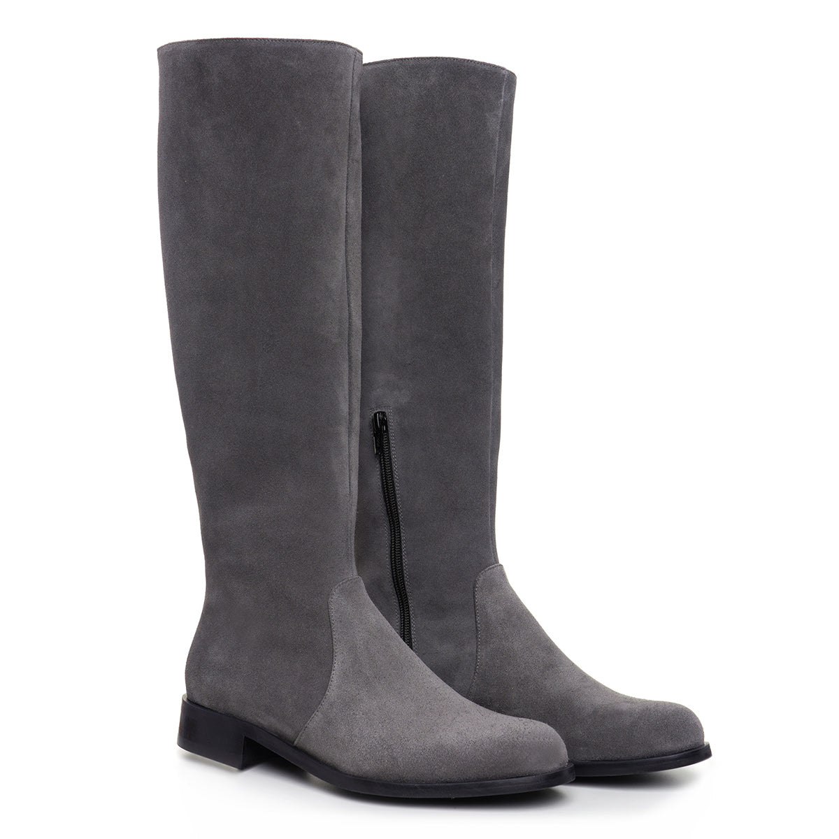 Cizme Lilly Piele Intoarsa, Sub Genunchi, Gri