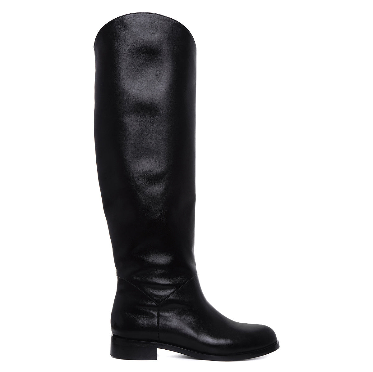 Cizme Norra Piele Naturala, Sub Genunchi, Negre