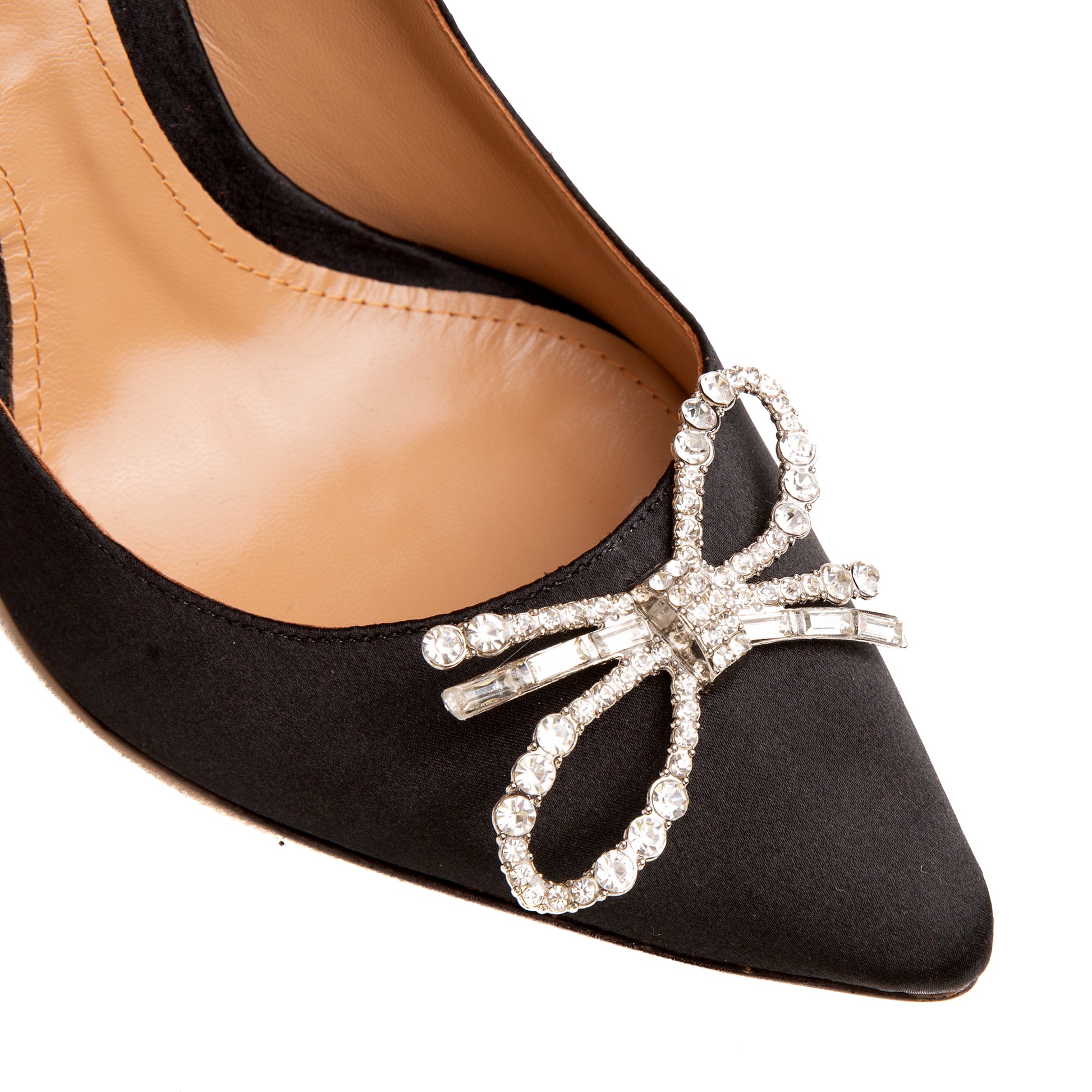Pantofii Albertinne sunt decorati cu fundite elegante din pietricele. Acestea compleaza simplitatea satinului din care sunt executati. O aparitie impresionata la orice eveniment sau o nota sofisticata langa o tinuta de zi.