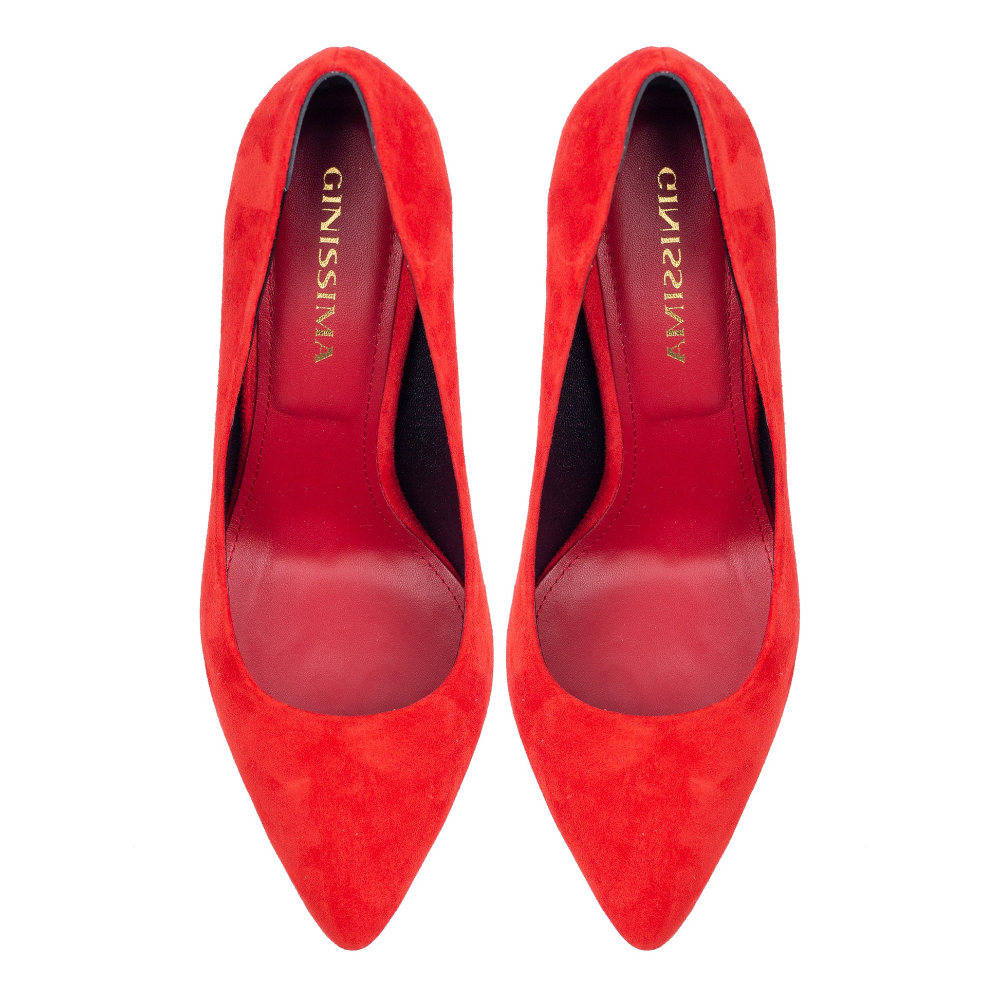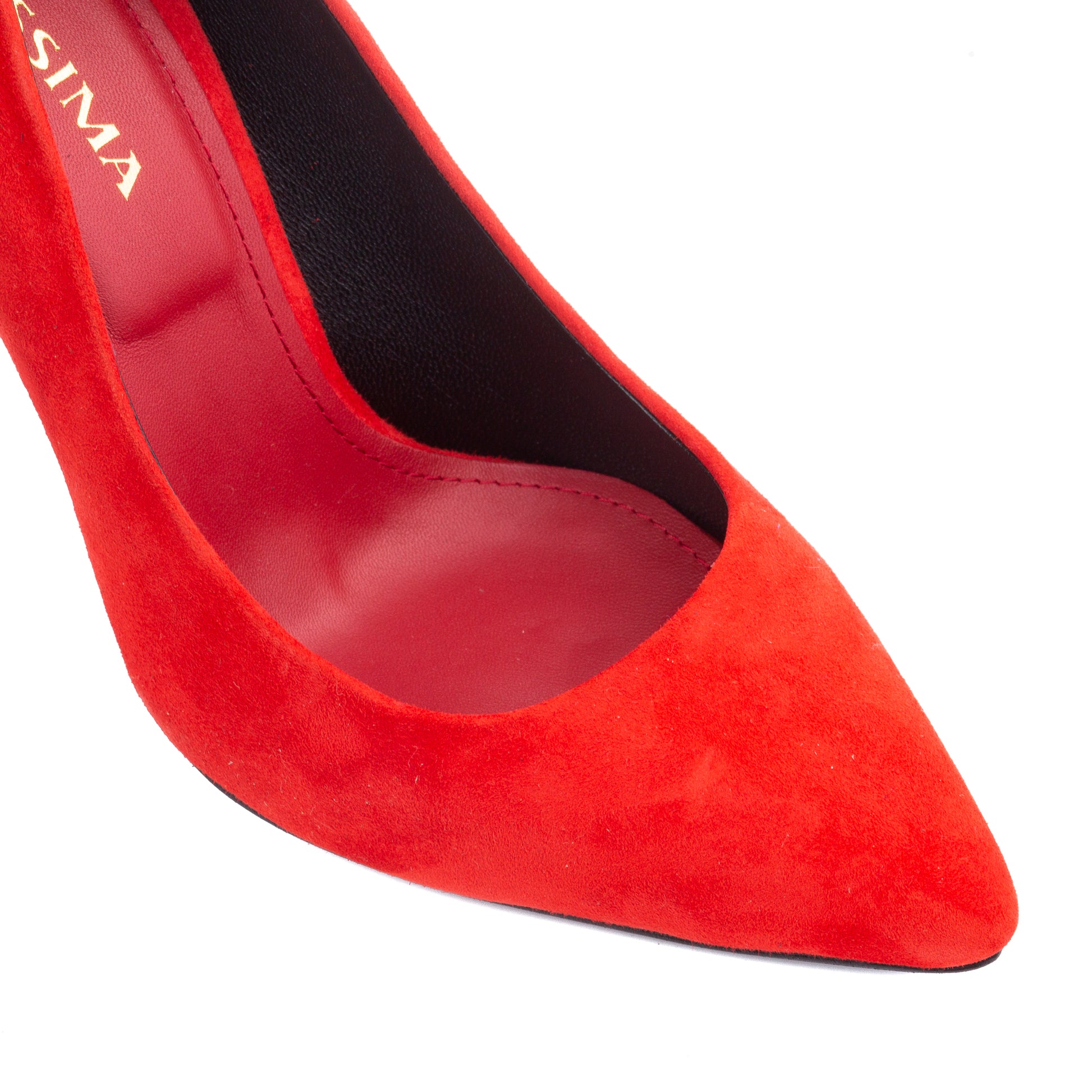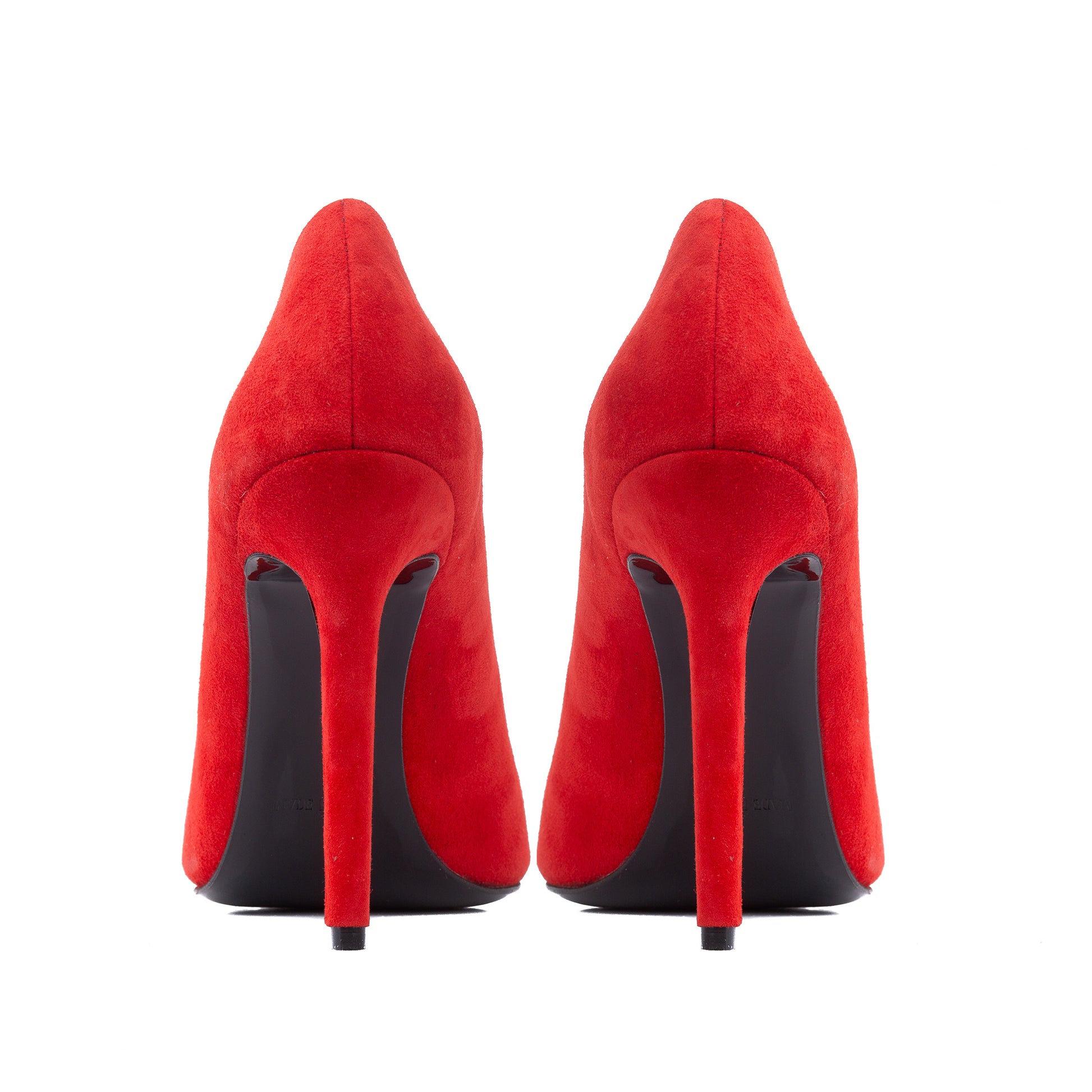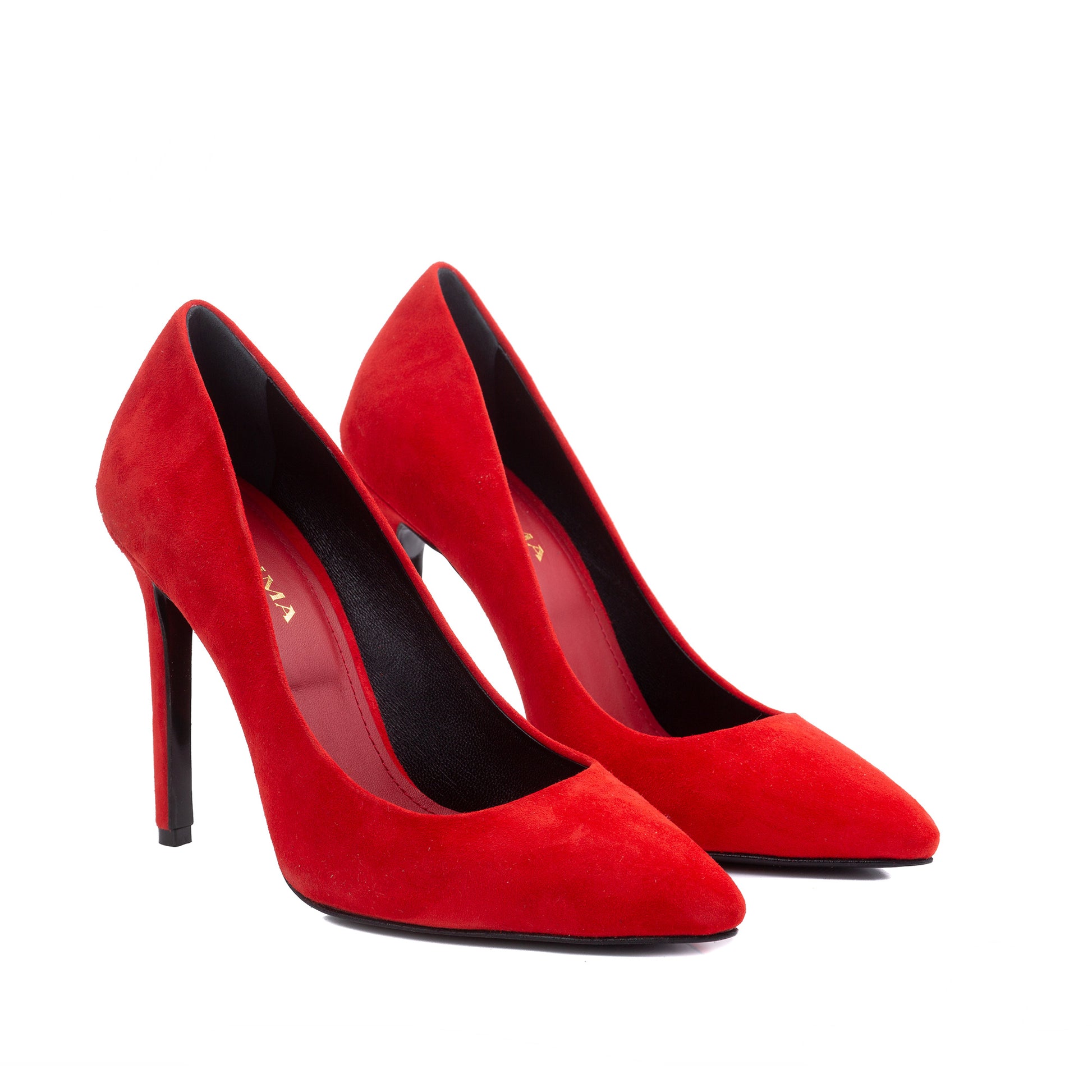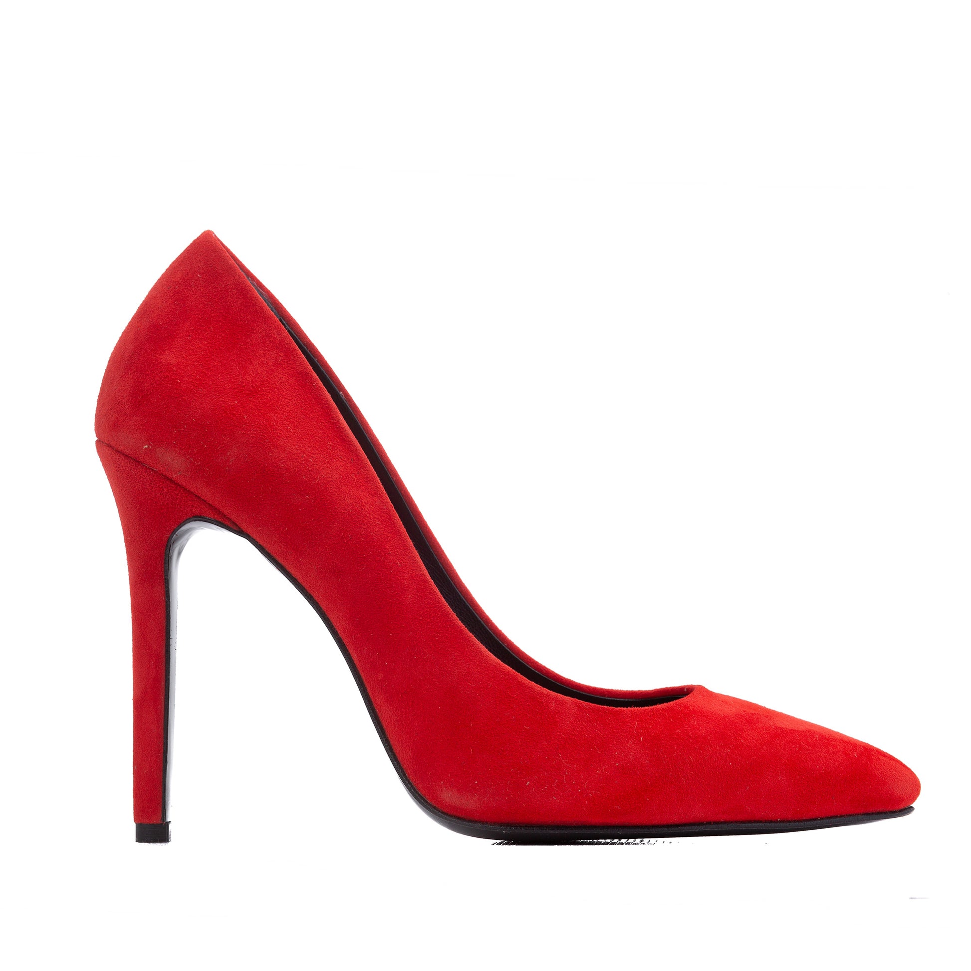 Pantofi Alice Stiletto Piele Intoarsa, Rosii