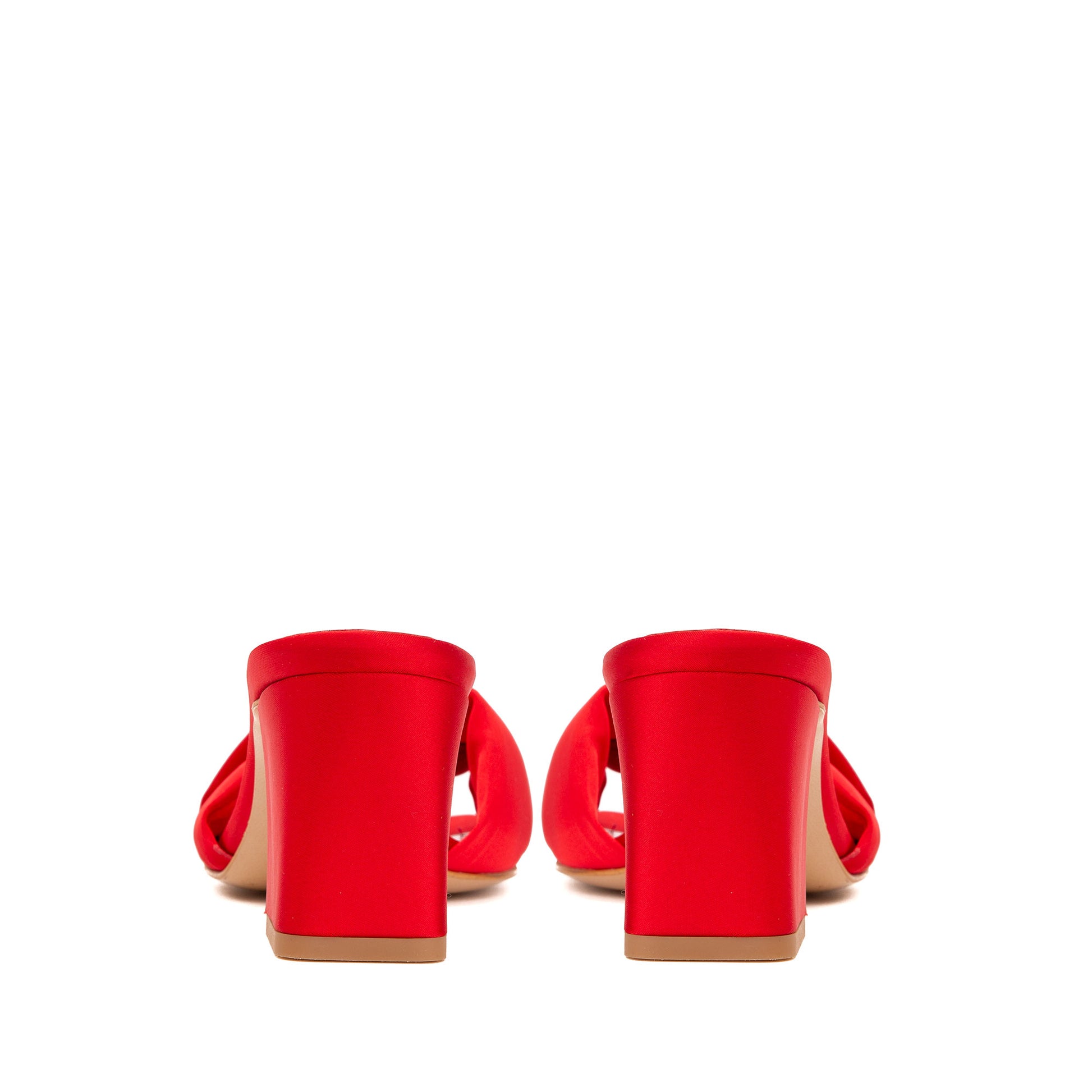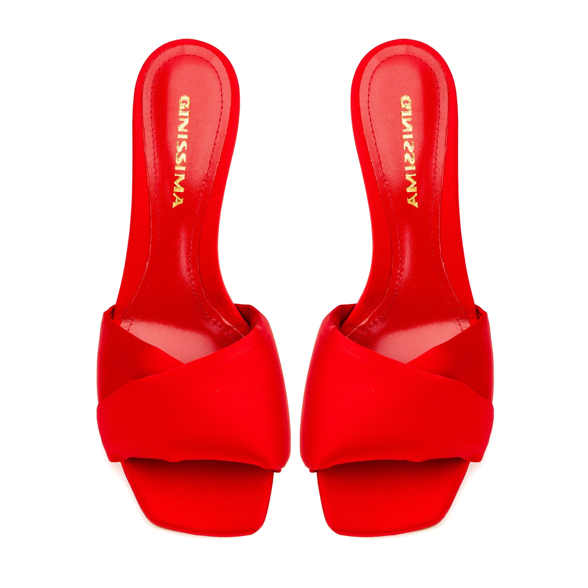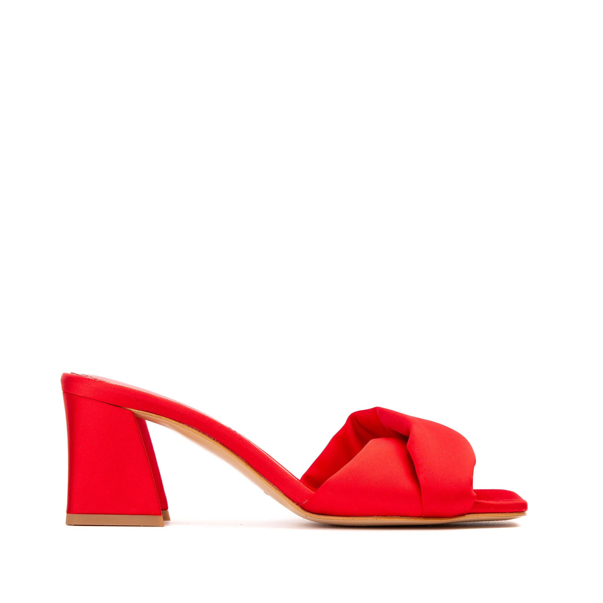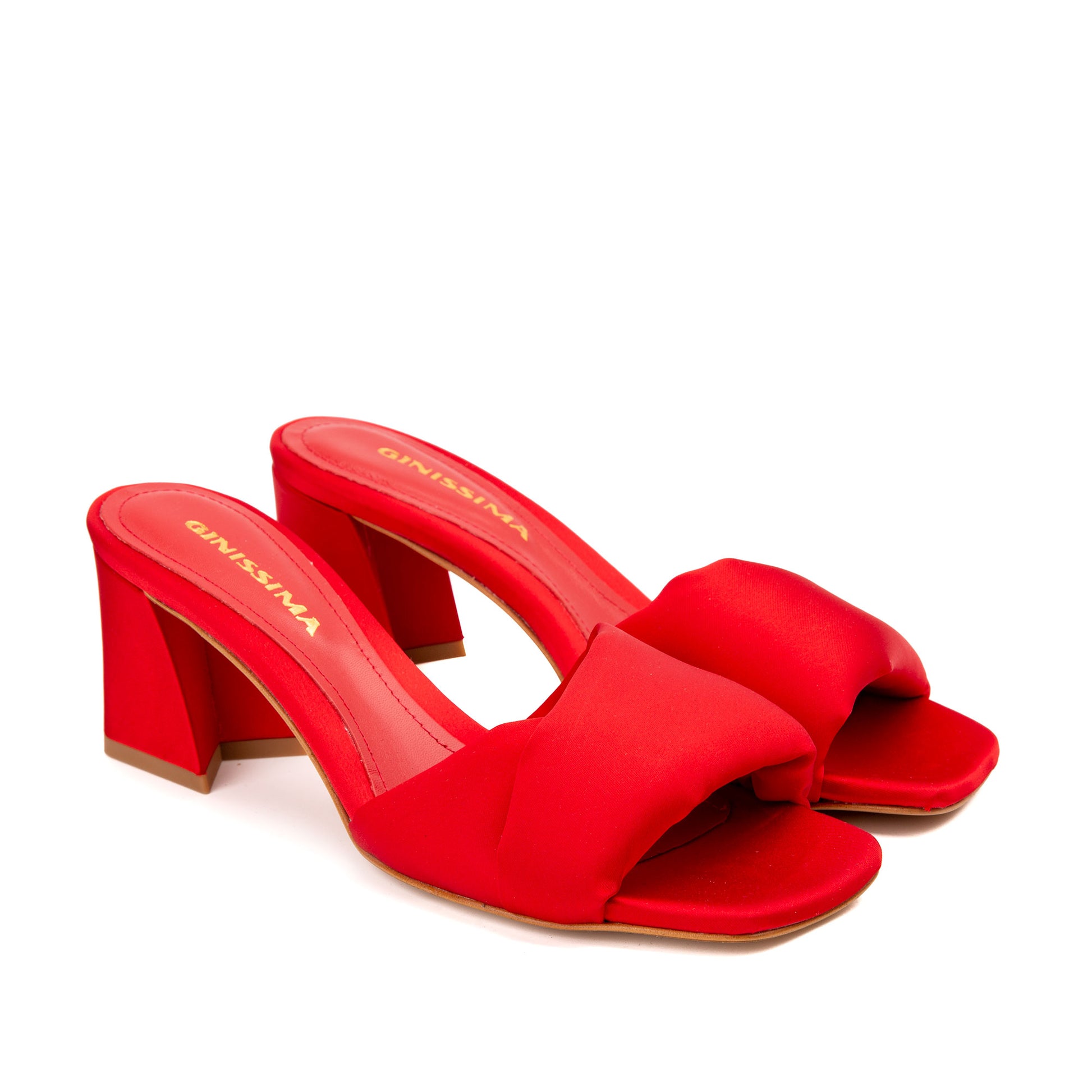 Sabotii Ama au un look retro sofisticat si sunt realizati din satin rosu, pe un toc gros si evazat.