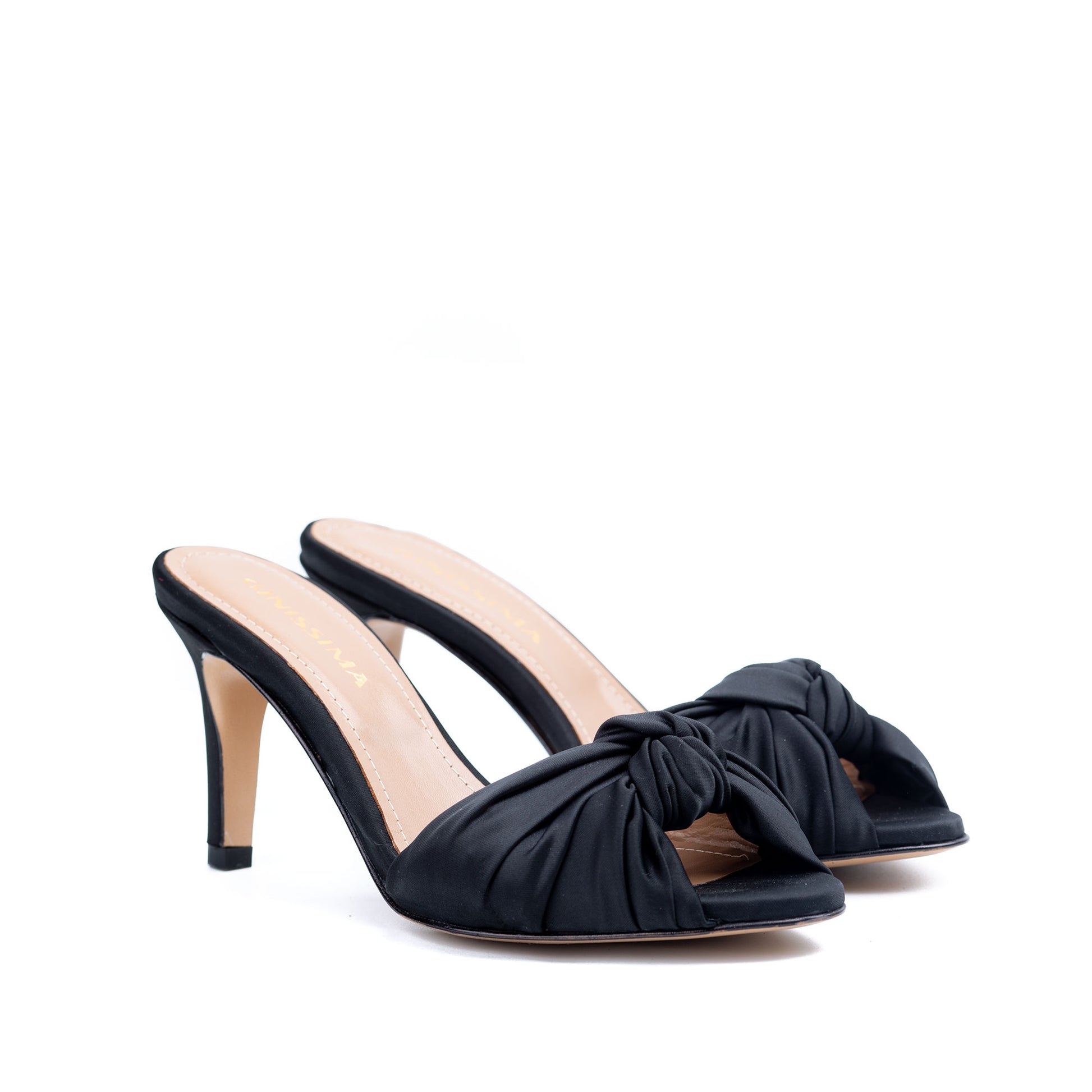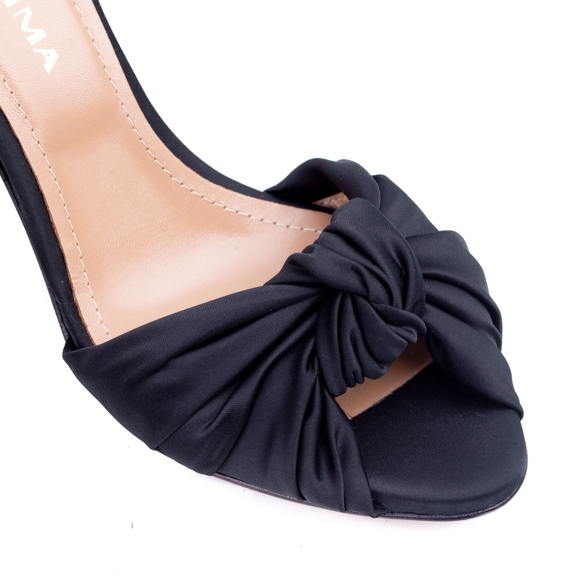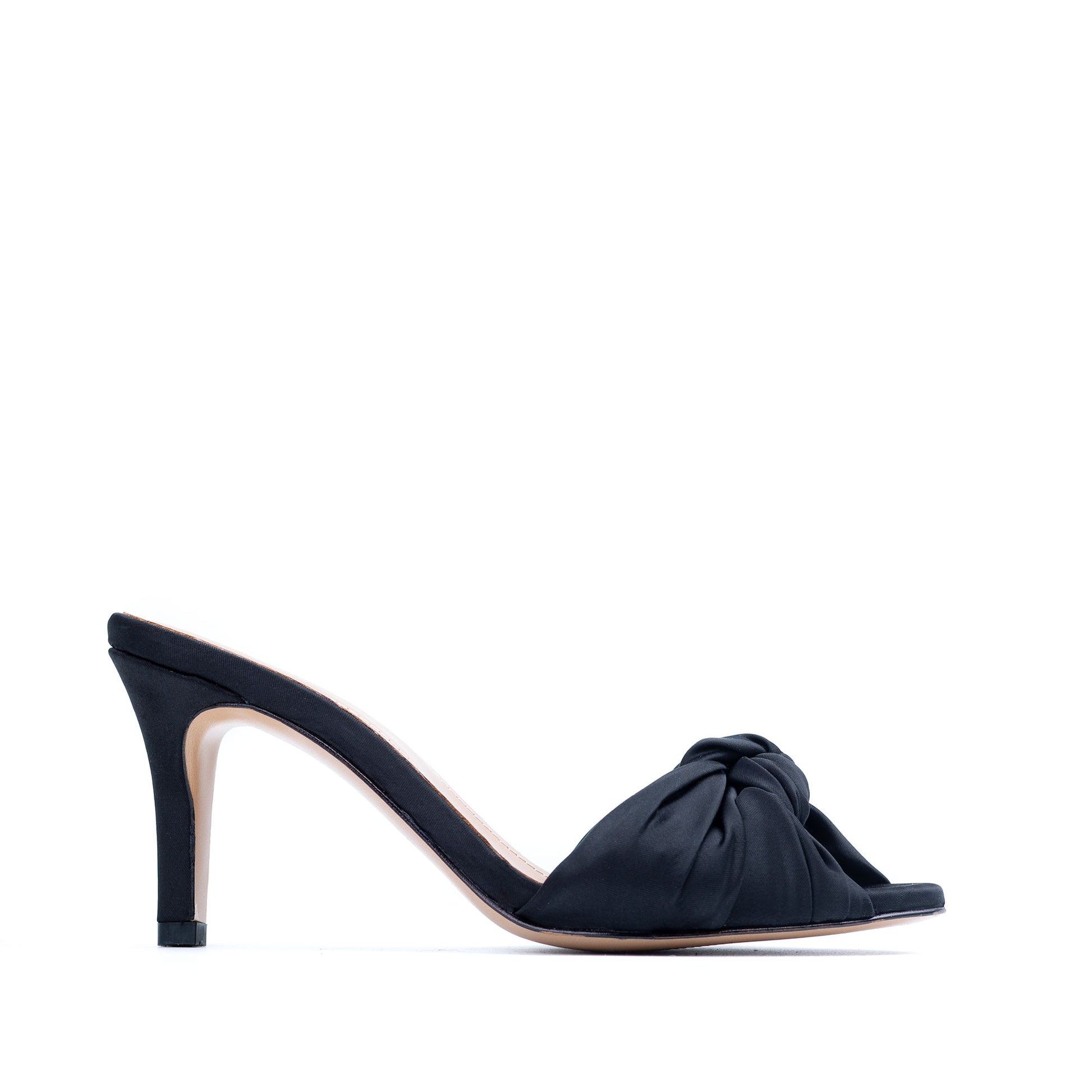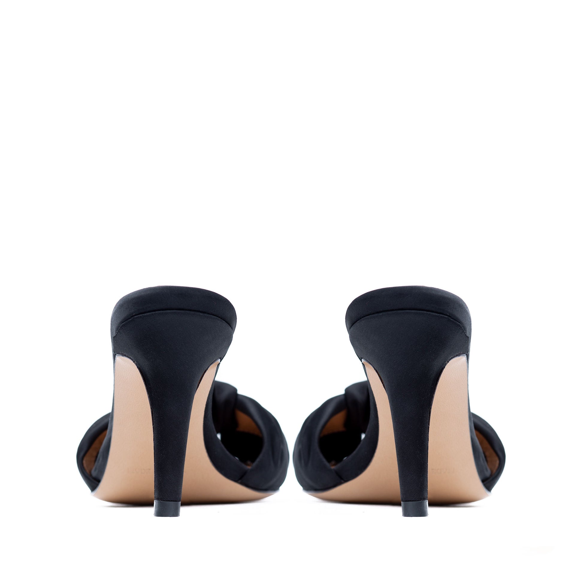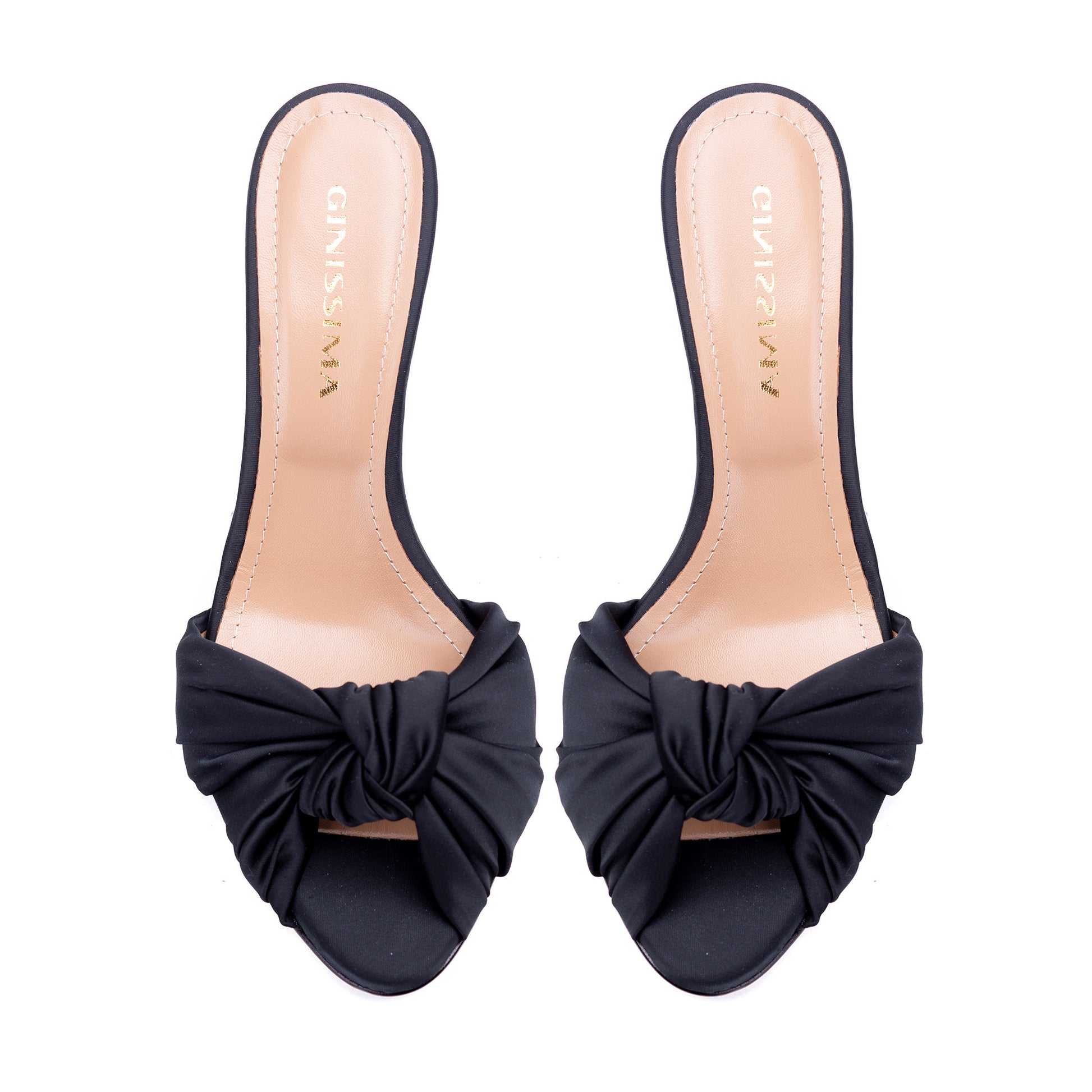 Saboti femini clasici, reinterpretati pe un toc subtire de 8 cm, realizati din satin negru si interior nude din piele.