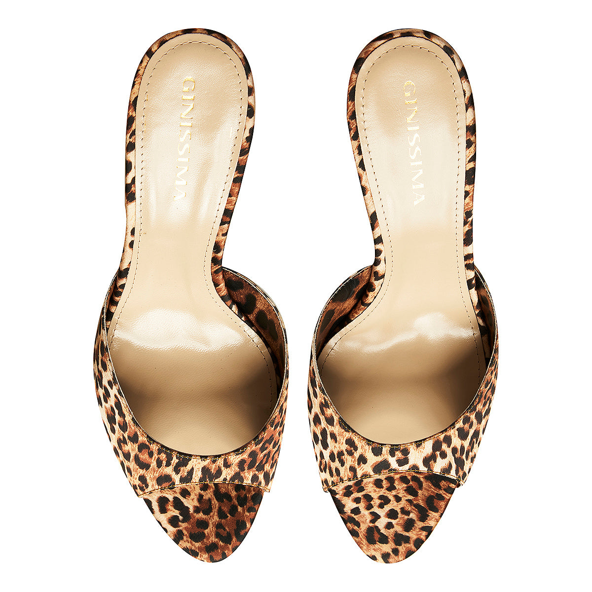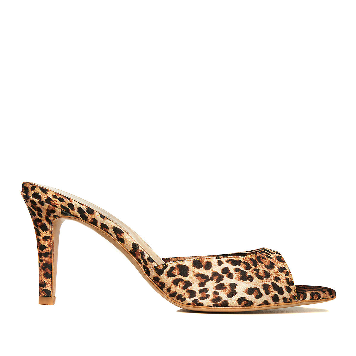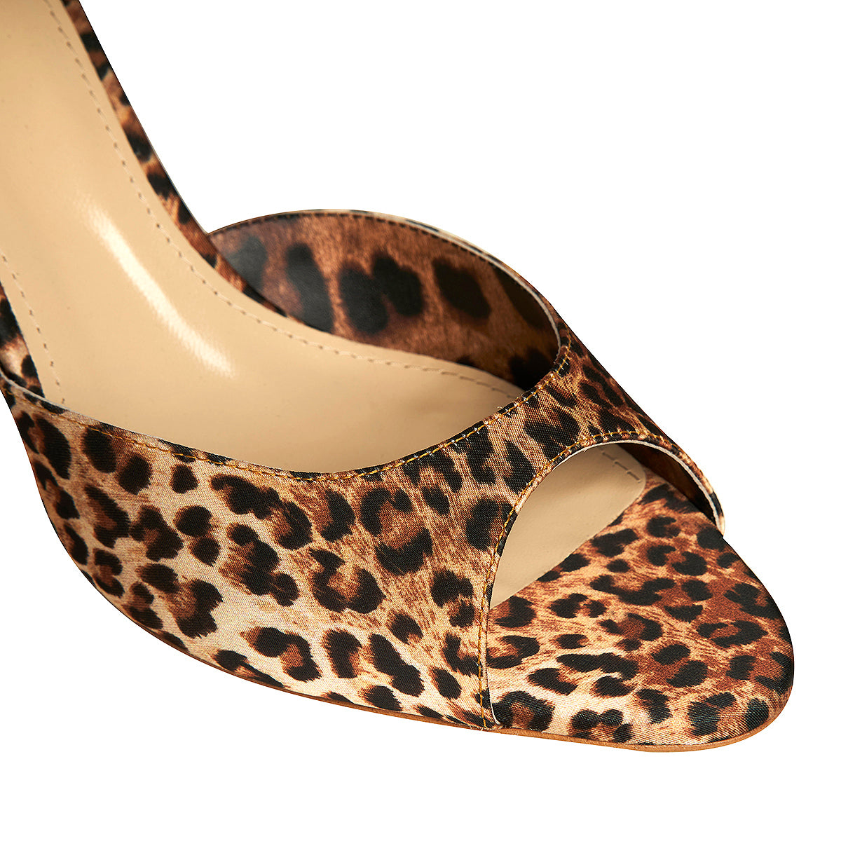 Sabotii Vicky completeaza perfect o tinuta de zi sau de seara, casual sau eleganta. Sunt realizati din satin animal print la exterior si piele naturala la interior , pe un toc subtire, garantand o tinuta perfecta si comoda.