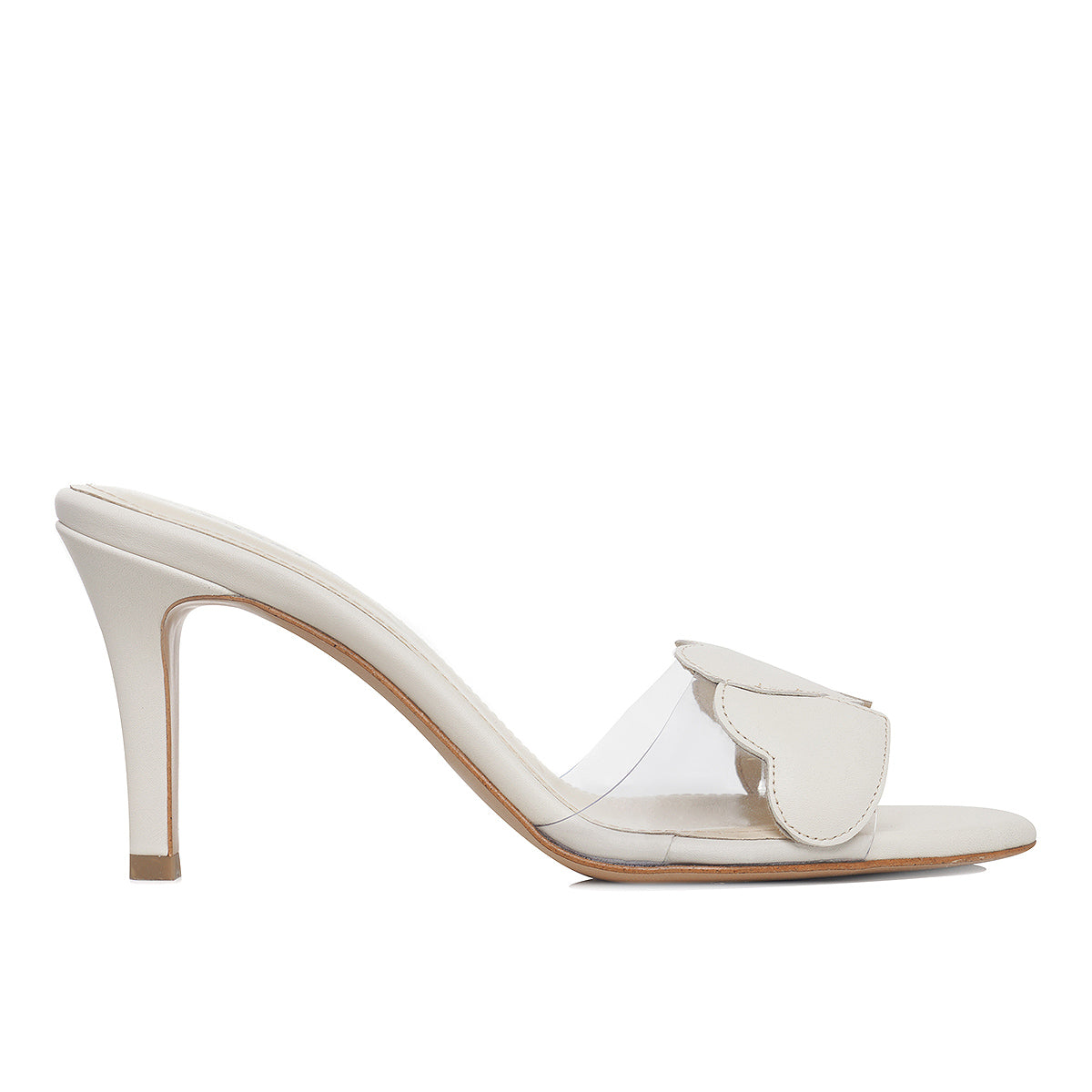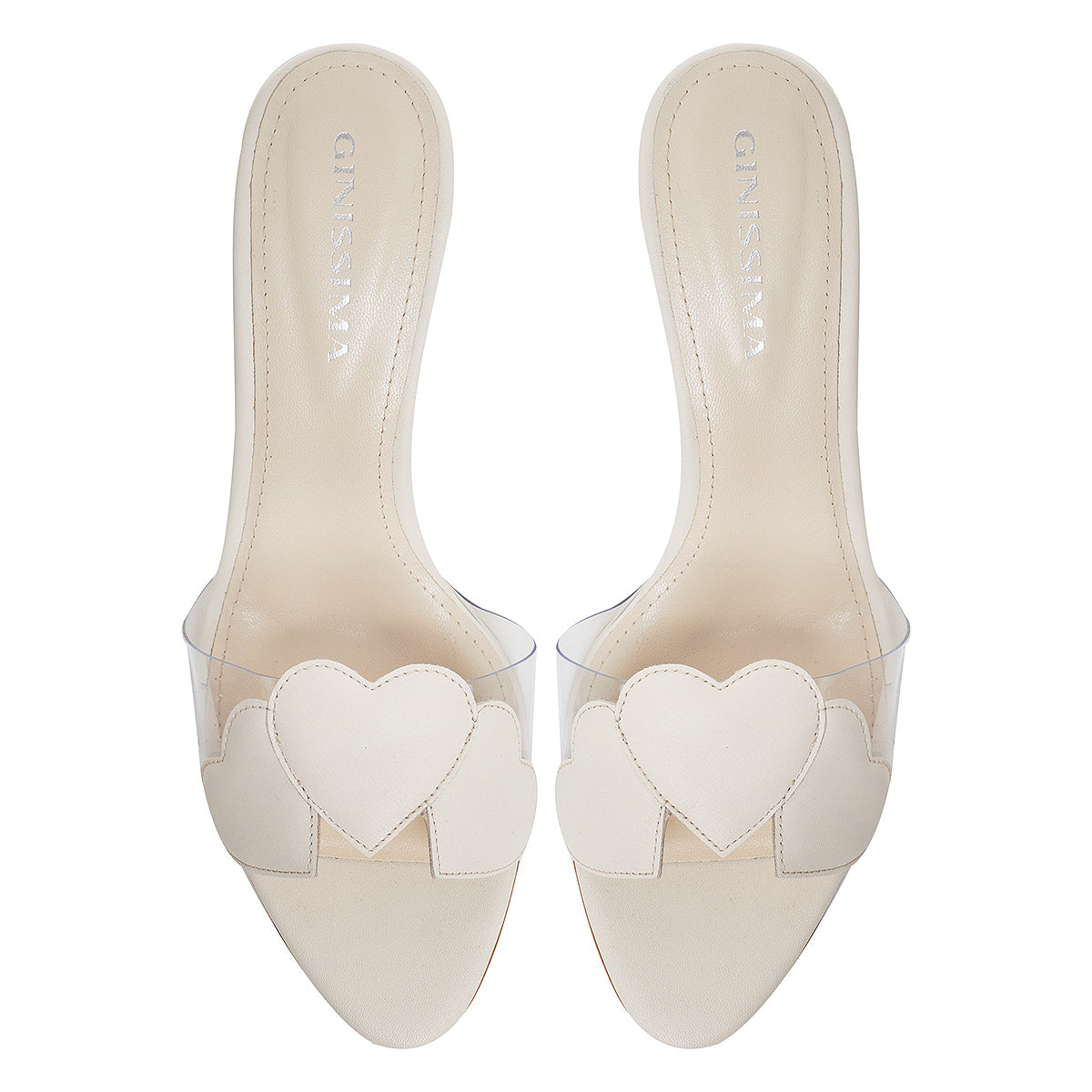 Sabotii Love Me sunt perfecti pentru a fi purtati intreaga zi. Executati din inimioare croite individual din piele alb-unt in diverse mari, cusute una langa alta, se deosebesc prin detaliul executiei.  Cu varf deschis si toc subtire, acest model interesant va va rapi inima.