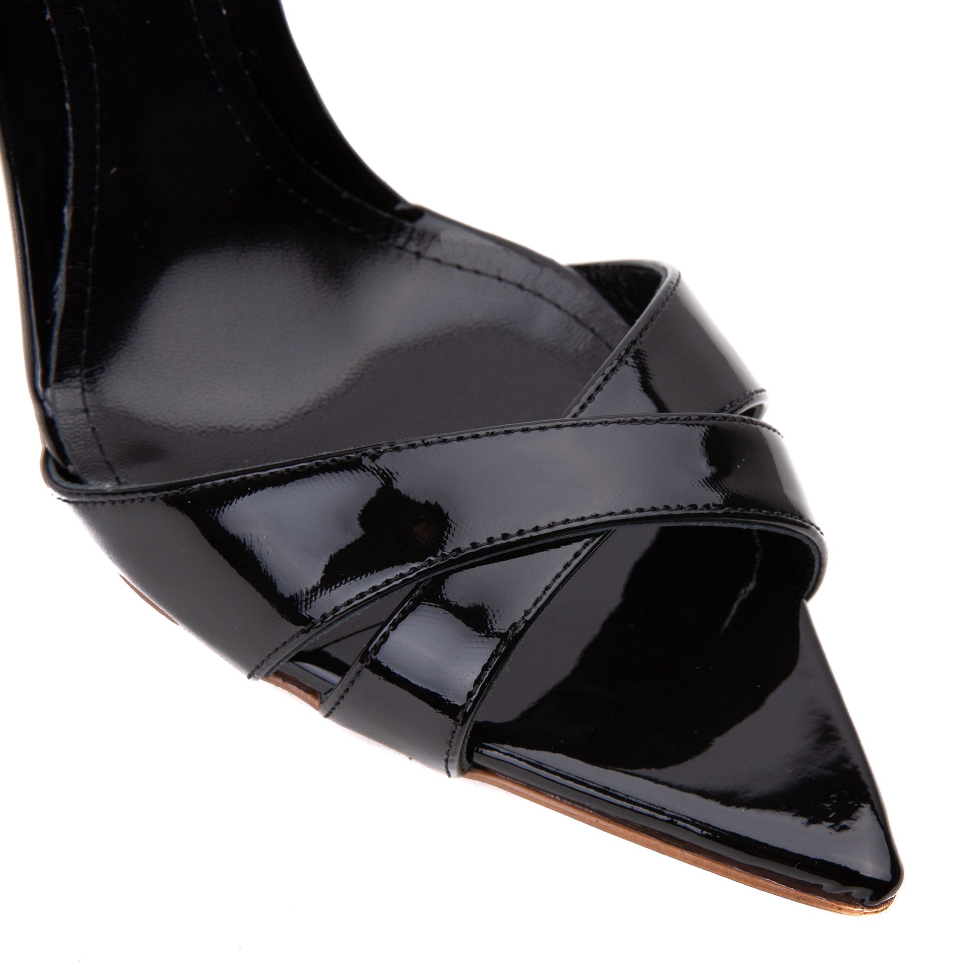 Sandalele Thea sunt realizate din piele naturala lacuita. Inspirate dintr-un model clasic reinterpretat in tenditele actuale, baretele incrucisate au dimensiunile ideale si sunt amplasate astfel incat sa nu deranjeze in zona degetelor. Un model ce ofera feminitate si confort, pe langa atentia la detalii demonstrata si prin folosirea la interior a aceleiasi nuante de piele naturala, le face optiunea perfecta pentru intreaga zi, cu fusta, rochie sau pantalon. Bareta de silicon asigura o fixare perfecta, fara sa deranjeze si fara sa lase sandaua sa scape din picior.