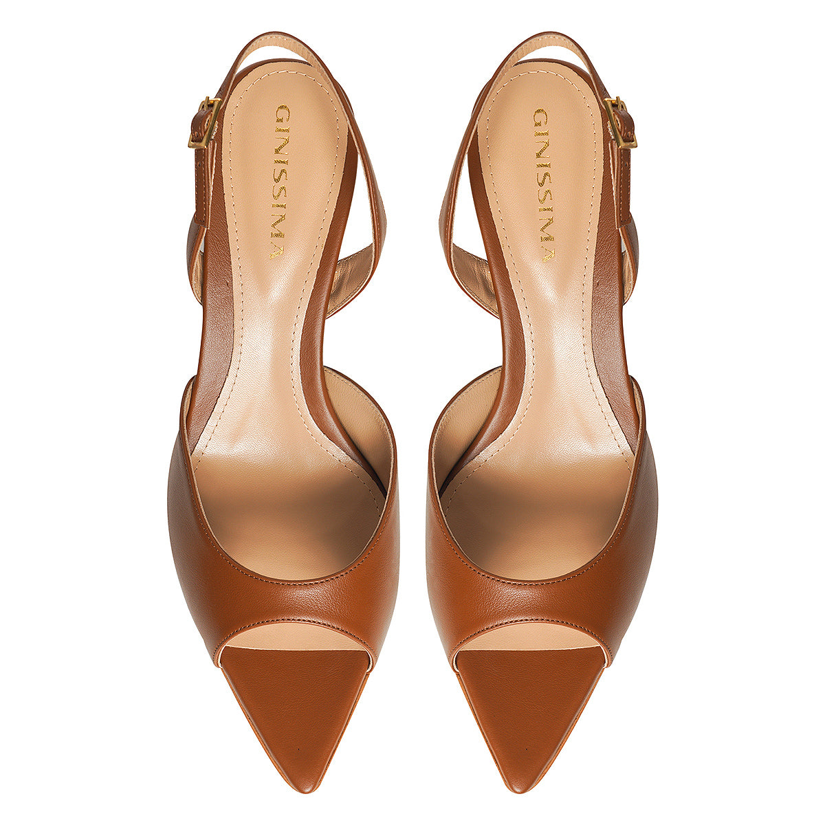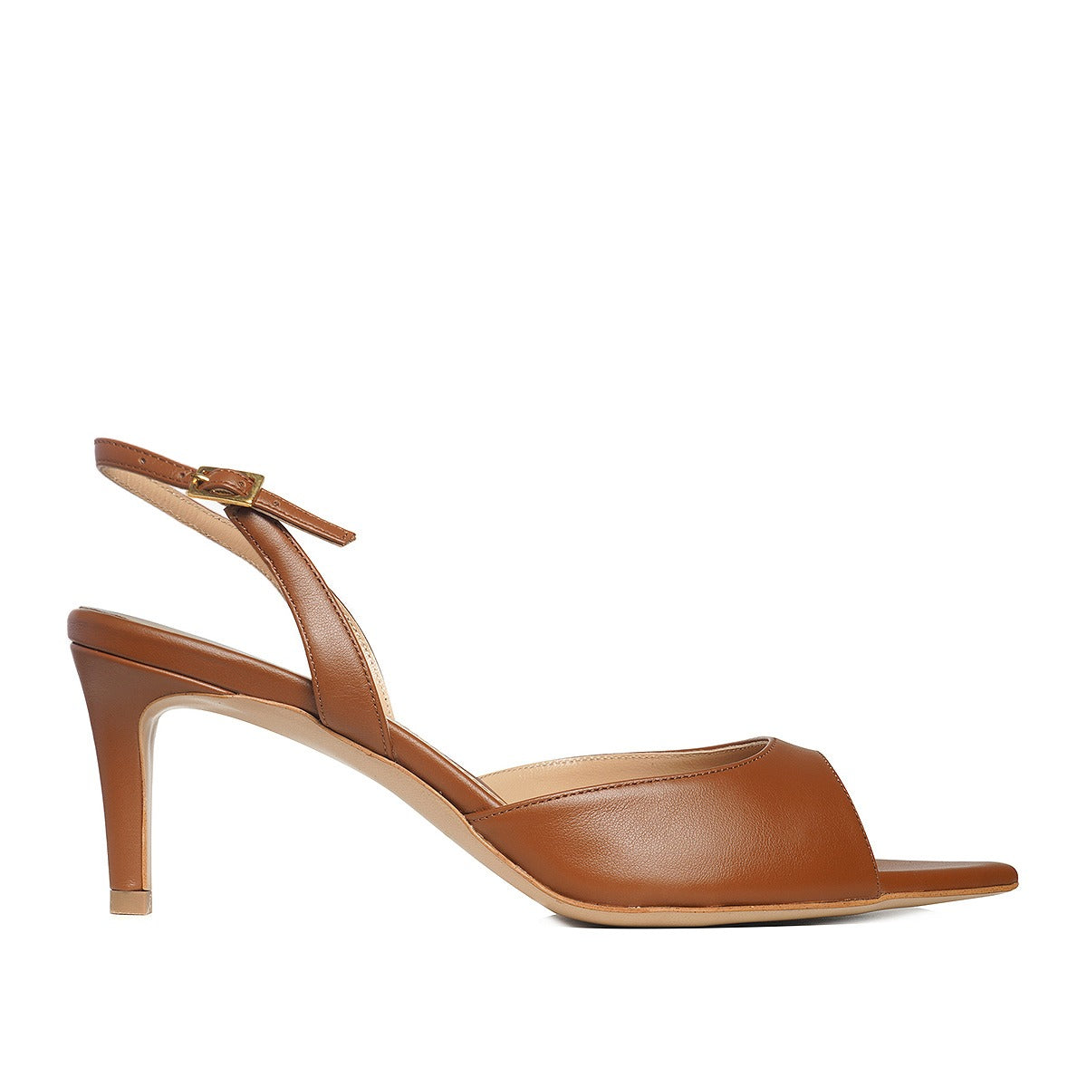 Sandalele Vicky cu varf ascutit completeaza perfect o tinuta de zi sau de seara, fiind realizate din piele naturala maron, pe un toc subtire, iar bareta reglabila de la spate garanteaza o tinuta perfecta si comoda.