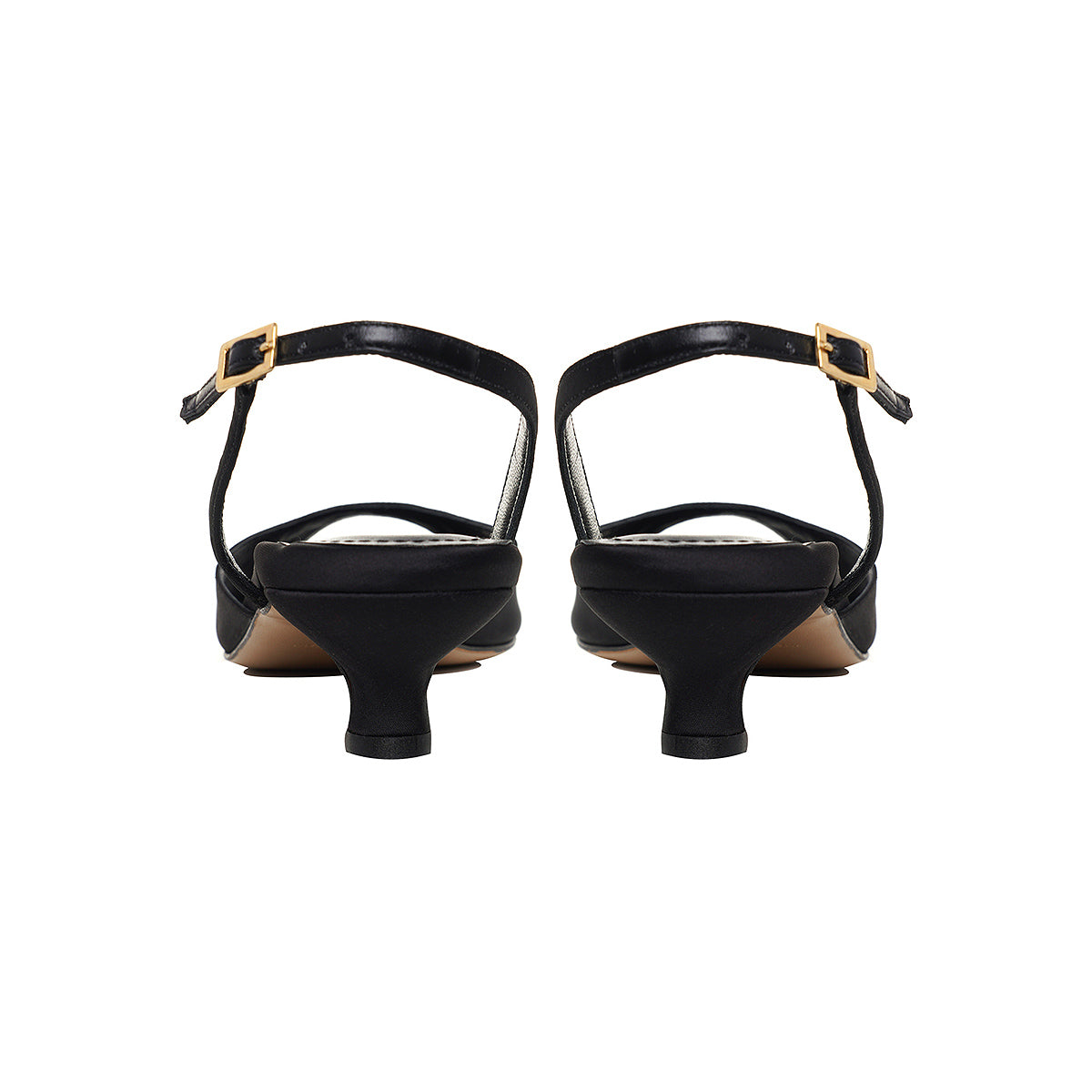 Sandale Vicky Satin, Varf Ascutit, Negre - Kitten Heels