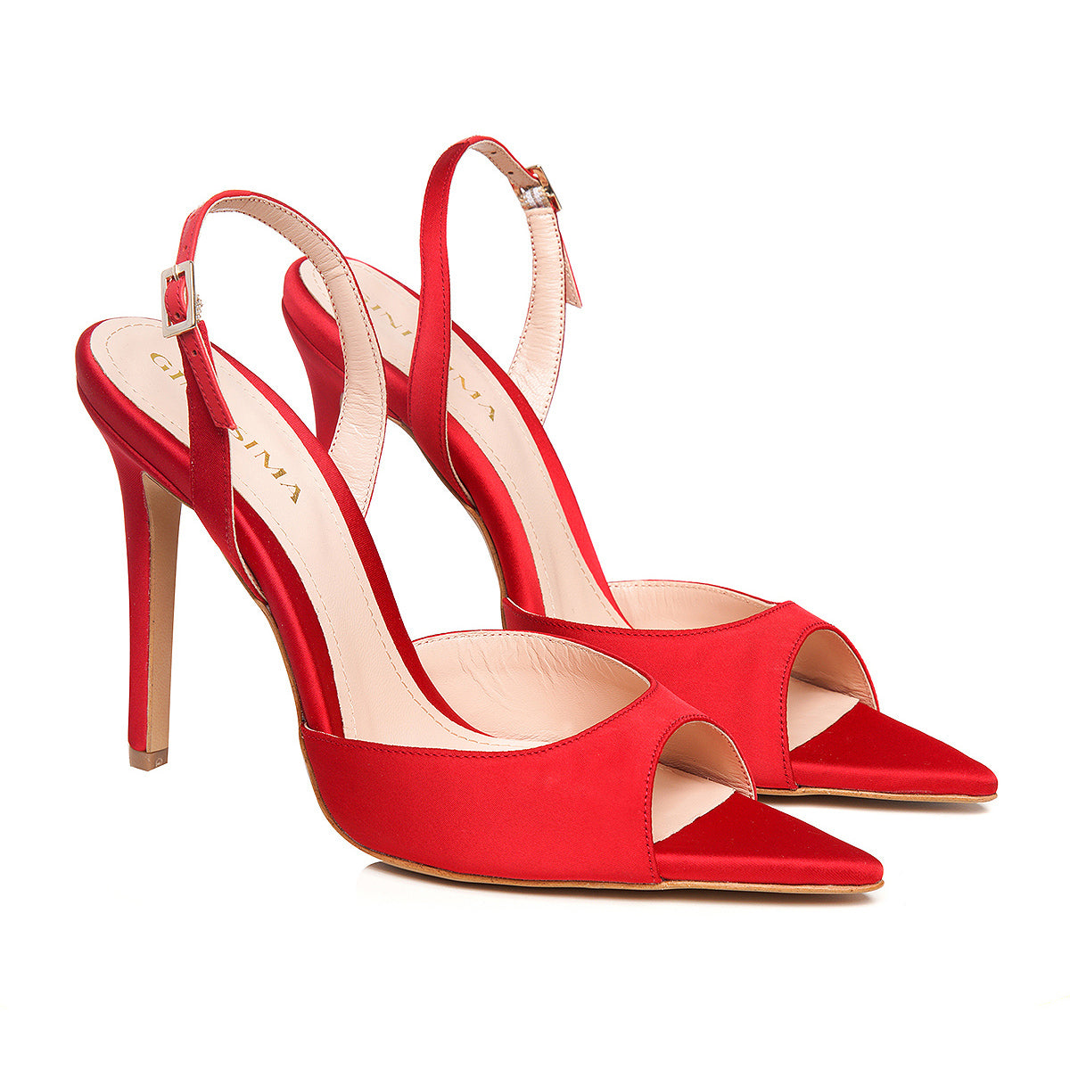 Sandale Vicky Satin, Varf Ascutit, Rosu