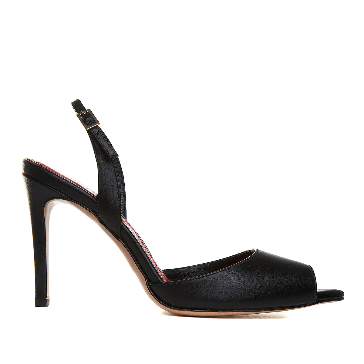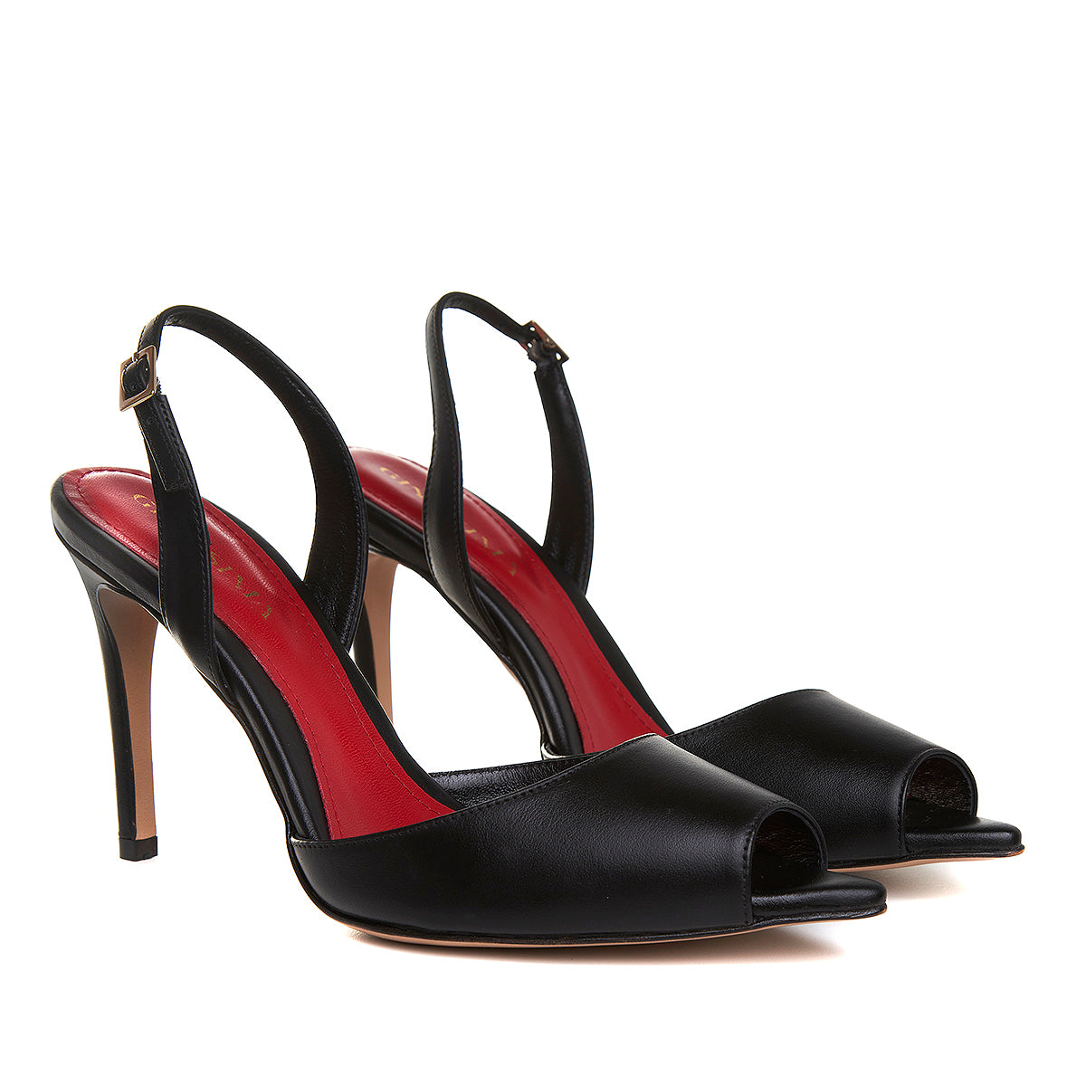 Sandalele Alice cu varf ascutit decupat completeaza perfect o tinuta de zi sau de seara, fiind realizate din piele naturala neagra, pe un toc subtire, iar bareta reglabila de la spate garanteaza o tinuta perfecta si comoda.