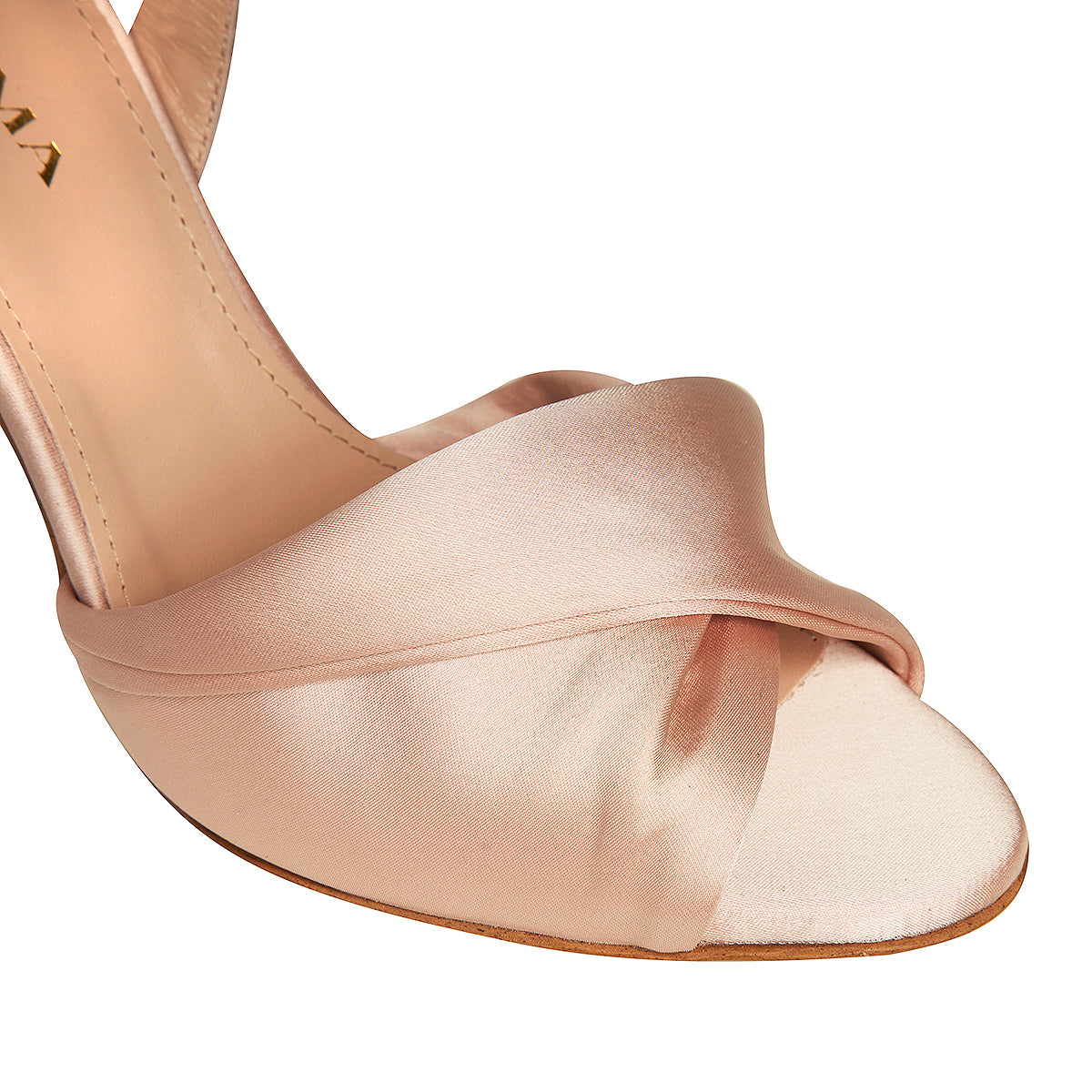 Sandalele Cleo au un look retro sofisticat si sunt realizate pe un calapod comod, din satin nude, cu interior din piele naturala in acelasi ton. Pot fi purtate atat de mirese, cat si la orice eveniment sau tinuta feminina de zi ori de seara.