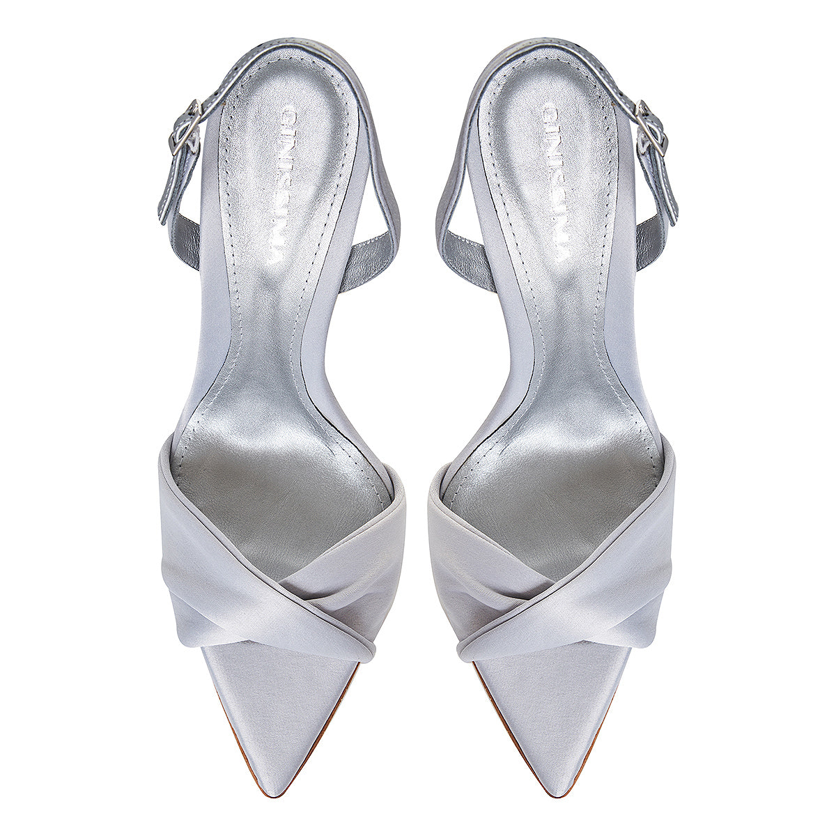 Sandale Nunta Cleo Satin, Varf Ascutit, Gri-Argintiu