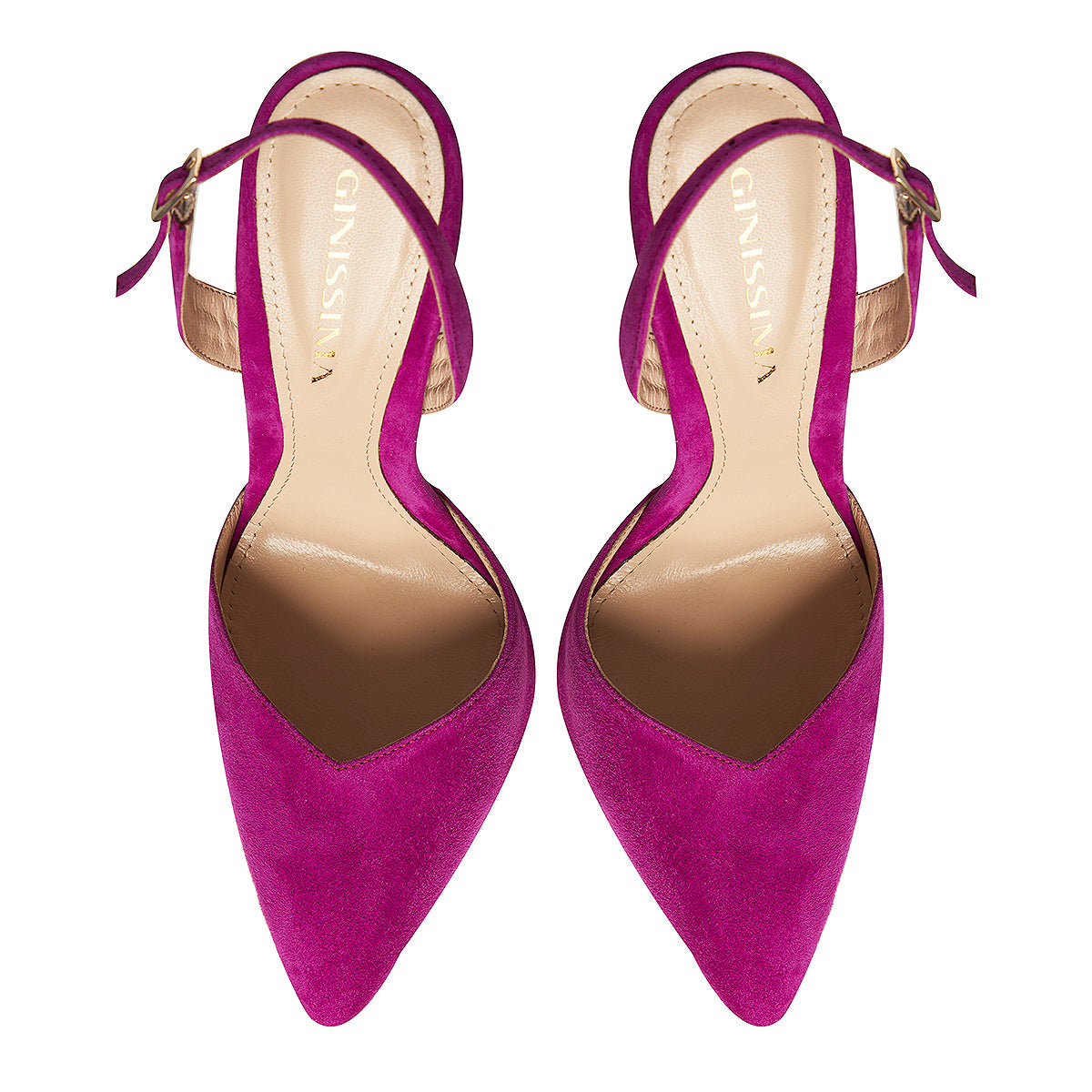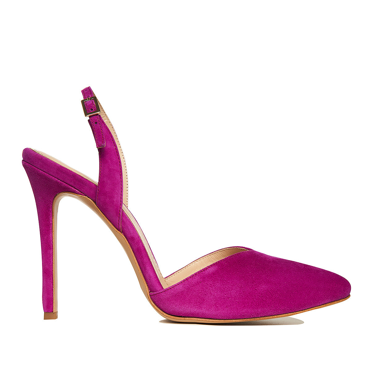 Clasicul stil al pantofilor Alice din piele intoarsa fucsia sunt ușor de purtat la orice eveniment, cat si la o tinuta feminita de zi, fie ca alegi pantaloni sau rochii. Decupajul in V subtiaza vizual piciorul.