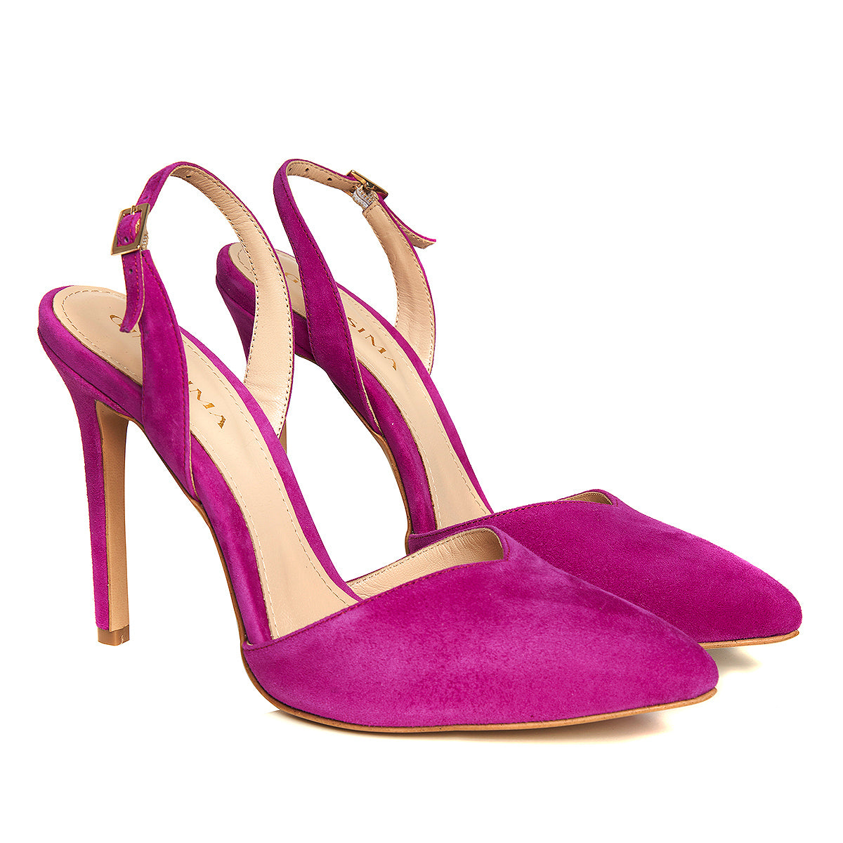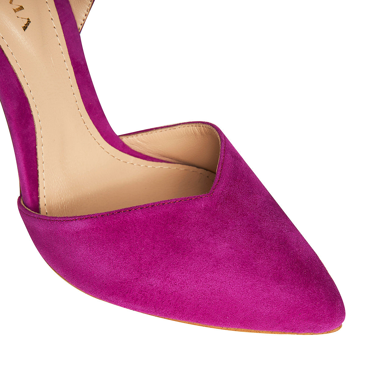 Pantofi Alice Decupat in V, Piele Intoarsa, Fucsia