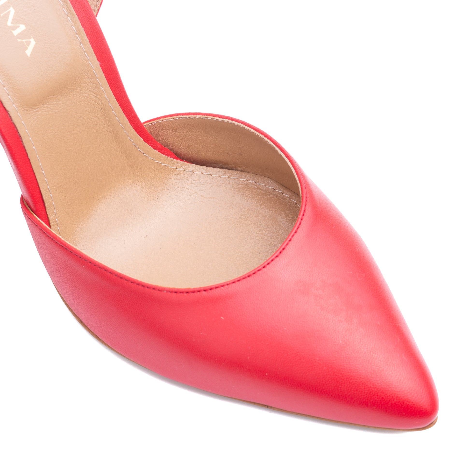 Clasicul stil al sandalelor Alice din piele naturala rosie-corai si interior nude sunt ușor de purtat la orice eveniment, cat si la o tinuta feminina de zi, fie ca alegi pantaloni sau rochii.