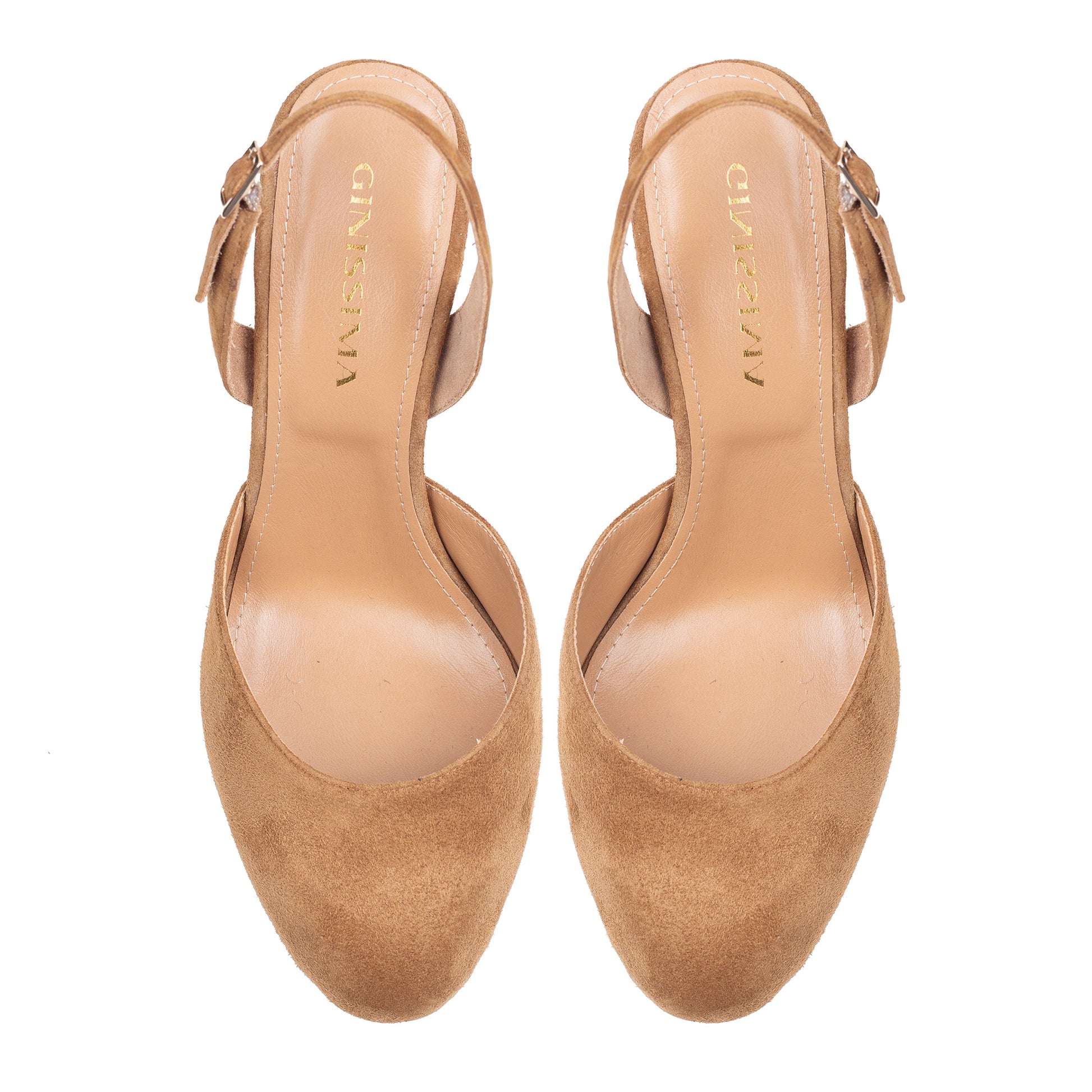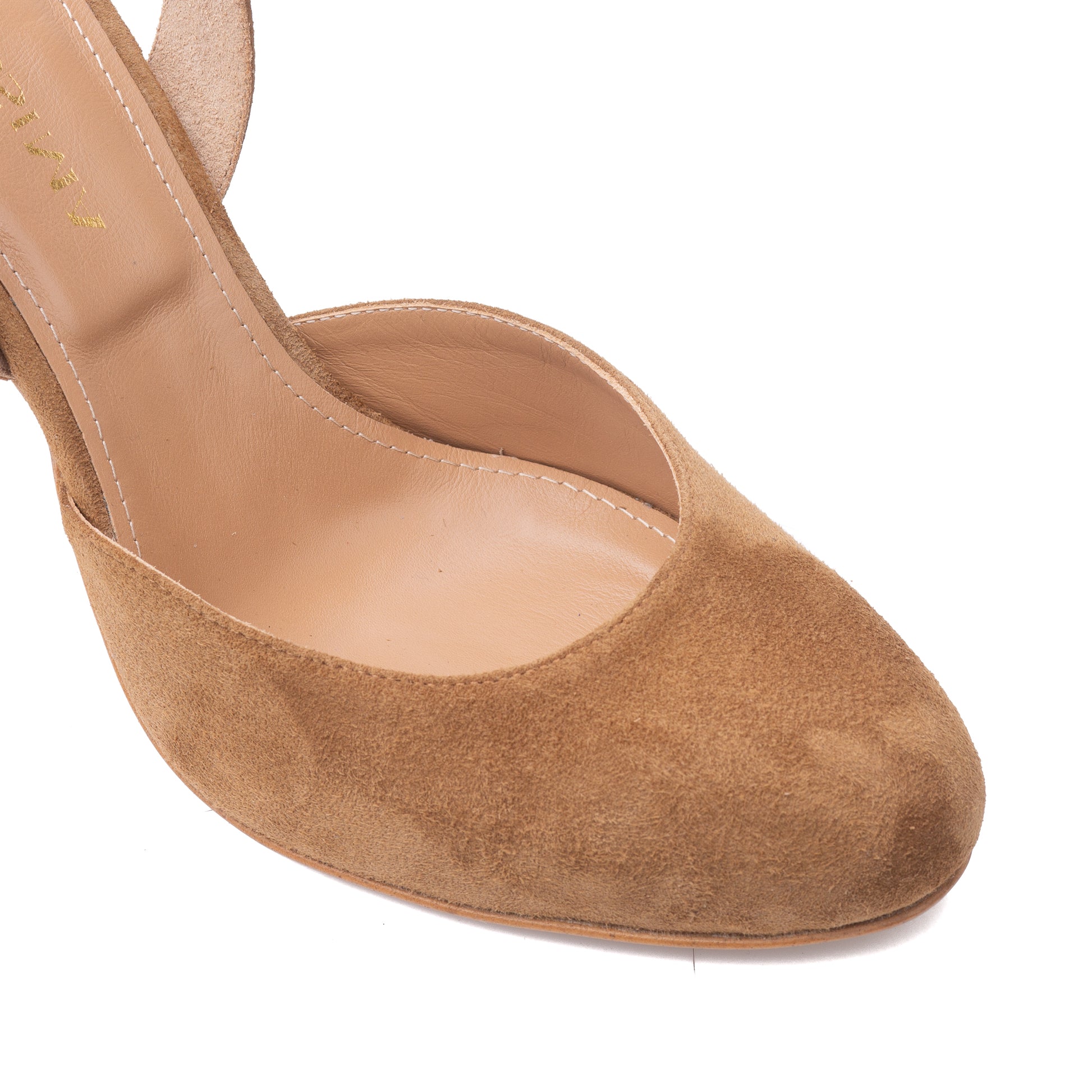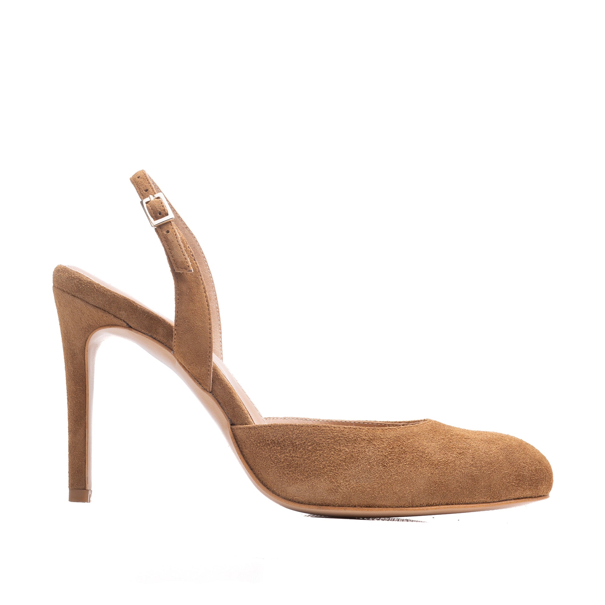 Sandalele Lydia reprezinta o reinterpretare a pantofilor cu varf rotunjit, acestea putand fi purate cu usurinta la orice tinuta, atat eleganta, cat si casual. Sunt realizate pe un calapod comod, din piele intoarsa maron, cu interior nude.