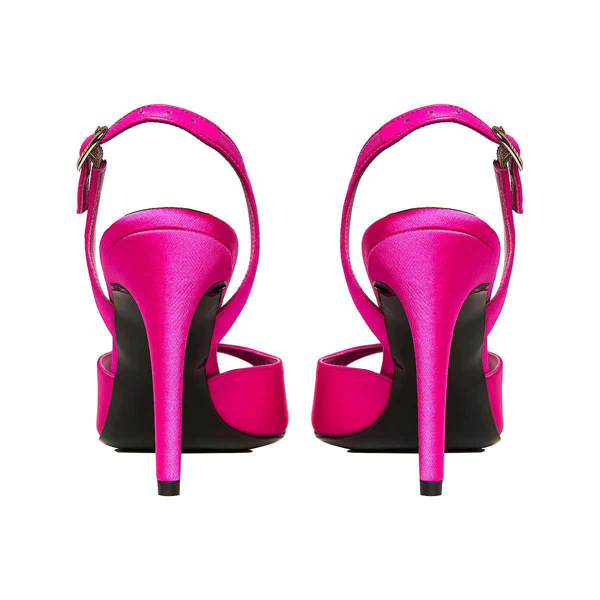 Sandalele Vicky completeaza perfect o tinuta de zi sau de seara, casual sau eleganta. Sunt realizate din satin fucsia la exterior si interior din piele naturala neagra , pe un toc subtire, garantand o tinuta perfecta si comoda.